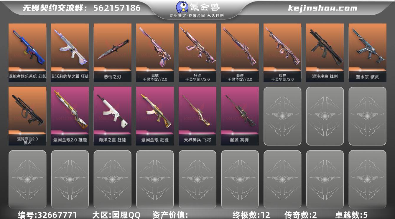 【qyz9680】可二次 玩够能回血 千灵2.0 怜悯 qyz9680 【近战武器】:近战武器-碎心裂刃,近战武器-无畏契约季前邀请赛 悲悯之刃,近战武器-流风回雪,近战武器-嘟昂嘟昂超弹力水球拳套 【狂徒】:狂徒-千灵华绽//2.0,狂徒-艾沃莉的梦之翼,狂徒-海洋之星,狂徒-紫阙金琅 【幻影】:幻影-源能者娱乐系统 【獠犬】:獠犬-混沌序曲//2.0 【冥驹】:冥驹-起源 【飞将】:飞将-天界神兵 【莽侠】:莽侠-千灵华绽//2.0 【战神】:战神-千灵华绽//2.0 【雄鹿】:雄鹿-紫阙金琅//2.0 【骇灵】:骇灵-塑水宗 【蜂刺】:蜂刺-混沌序曲 【鬼魅】:鬼魅-千灵华绽//2.0 【卡面】:树懒大作战 卡面,无畏契约GO!第一卷:芮娜 卡面,无畏契约GO!第一卷:零 卡面,无垠星环 卡面,《双城之战》金克丝 卡面,胡桃狂想 卡面,代号红色 卡面,新兵报到 卡面,V契约 卡面,无畏契约 卡面 【喷漆】:买装还是存钱 喷漆,放下武器 喷漆,胜利属于无畏契约 喷漆,GLHF 喷漆,无畏契约 喷漆 【挂饰】:动力机箱 挂饰,天外飞客 挂饰,无畏契约 纪念币 挂饰