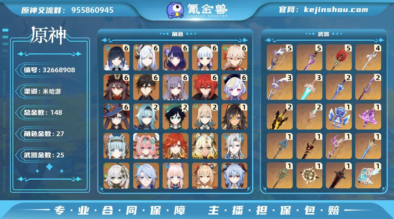 【店主推荐捡漏号/高练度精品号】60级/148黄/女主/27个五星角色/25个五星武器 0命那维莱特,1命迪希雅,0命纳西妲,满命夜兰,0命神里绫人,满命申鹤,2命优菈,满命雷电将军,满命枫原万叶,满命神里绫华,满命钟离,满命胡桃,0命甘雨,0命宵宫,2命温迪,0命可莉,0命达达利亚,0命珊瑚宫心海,满命刻晴,满命七七,2命琴,满命莫娜,满命迪卢克,0命希诺宁,0命玛薇卡,0命瓦雷莎,0命伊涅芙,精5若水,精2波乱月白经津,精1神乐之真意,精1息灾,精1赤角石溃杵,精2薙草之稻光,精1飞雷之弦振,精5雾切之回光,精1苍古自由之誓,精2无工之剑,精5护摩之杖,精1和璞鸢,精2天空之脊,精1天空之翼,精3阿莫斯之弓,精1天空之刃,精1天空之卷,精1尘世之锁,精4风鹰剑,精1狼的末路,精3天空之傲,精1祭星者之望