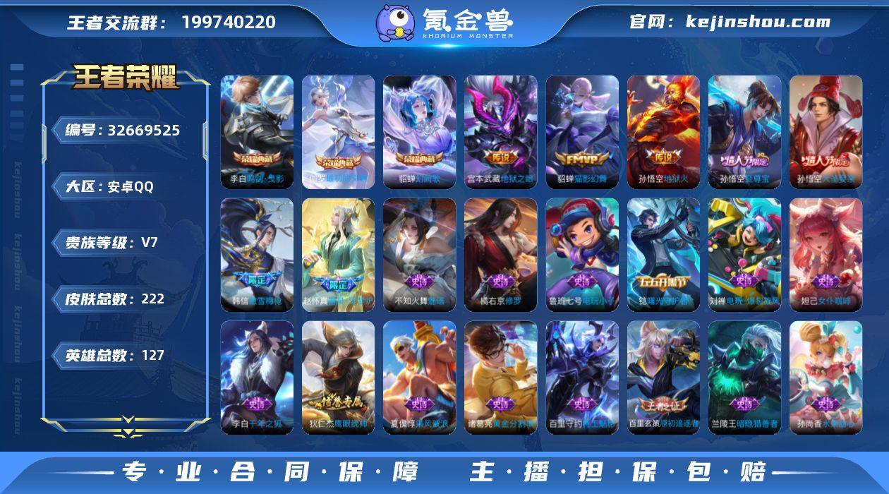 V7 3典藏 4传说 127英雄 222皮肤 可修改实名 男号 【英雄全皮】蚩奼全皮 【稀有英雄】敖隐(小龙人),大司命,嬴政(始皇帝),韩信(韩跳跳),夏洛特(夏师傅),艾琳,橘右京(橘子),娜可露露(鸟人),不知火舞,赵云,金蝉(唐僧),戈娅 【荣耀水晶】最初的交响(伽罗典藏),鸣剑·曳影,幻阙歌(貂蝉典藏) 【传说皮】地狱火,地狱之眼,猫影幻舞 【珍宝阁皮】蔷薇恋人,女武神 【赛季/战令皮】噬灭天穹(s37),古海寻踪(s33),海盐诗旅(s30),擒涛扼浪(s31),探海日志(s32),顽趣-梦奇,剑破天穹(s35),炼金王(s6),狰(s8),饕餮(s9),烛龙(s10),重明(s11),穷奇(s12),御狮(s13),御霄(s14),御旌(s15),御銮(s16),朔风刀(s17),混沌棋(s18),疑决卦(s19),醍醐杖(s20),原初探秘者(s21),万华元夜(s22),演武夺筹(s23),驱傩正仪(s24),千军破阵(s25),朔望之晖,沙漠行僧(s26),金庭之子(s27),大漠名商(s28),云中旅人(s29) 【史诗皮】星界战将,器灵·浮梦炉,九幽镇关,百相守梦-黄忠,紫霞仙子,电玩小子(小书包),白龙吟,黄金分割率,特工魅影,千年之狐,蒙恬荣光圣徽,偶像歌手,魅语,电玩·爆裂旋风,猫狗日记-孙策,猫狗日记-大乔,乱世虎臣,修罗,女仆咖啡,摇滚巨星,水果甜心,绅士熊喵,功夫厨神,暗隐猎兽者,鬼剑武藏,心灵战警,地狱岩魂...