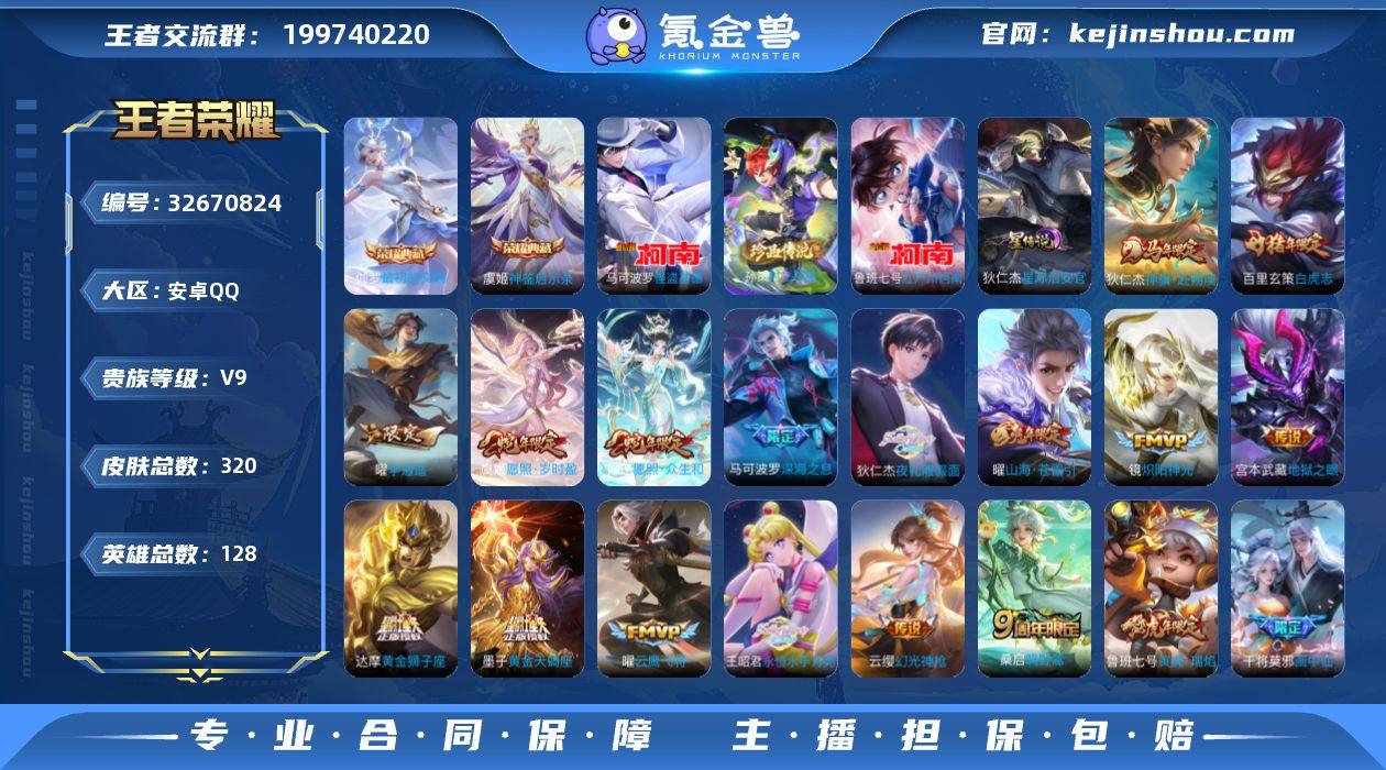 QQ区王者账号,可换绑密保手机,可二次实名,可改密可人脸,账号干净无违规。 当前荣耀王者段位,320个皮肤,2荣耀典藏,多款限定皮肤。 战力拉满:2个小国标+几十个金标,多位置全能战力号,巅峰赛排位随便打。 因个人退游不玩了,诚心出,支持平台验号,中介勿扰。 售价:5800元,可小小刀,非诚勿扰。
