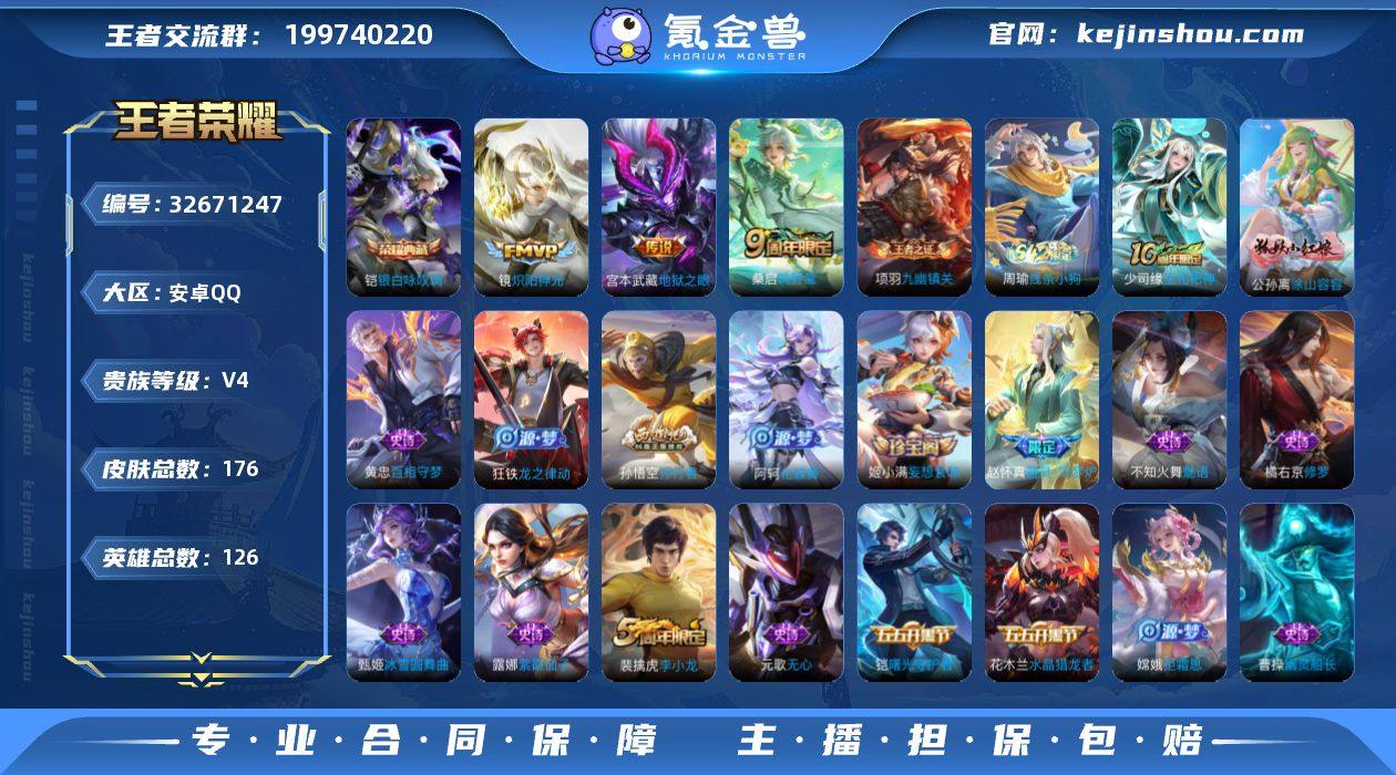编号96563 (qq钱包无法注销,不影响使用) 不可二次 v4 176皮肤 1典藏 3传说 银·白咏叹调 器灵·浮梦炉 孙行者 地狱之眼 炽阳神光 鸣野蒿 逐浪之夏 妄想食味 无心 蔷薇恋人 冰冠公主 街头霸王 黄金分割率 乱世虎臣 李小龙 猫狗日记(男) 曙光守护者 修罗 水晶猎龙者