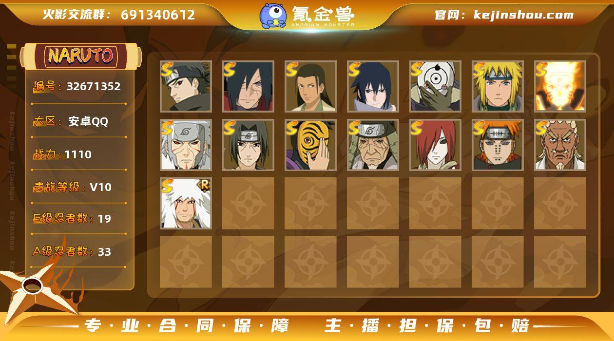 V10 19S忍 33A忍 19通灵 1110.5W战力 可二次 可修改实名 【S级忍者】宇智波止水「须佐能乎」,宇智波斑「秽土转生·解」,千手柱间·木叶创立,宇智波佐助「永恒万花筒」,神秘面具男 「红夜之刃」,大筒木金式「博人传」,漩涡鸣人 「九喇嘛连结」,自来也 「舞之豪杰」,旗木卡卡西「须佐能乎」,漩涡鸣人·宇智波佐助,宇智波带土「十尾人柱力」,宇智波斑「白面具」,千手扉间「秽土转生」,猿飞日斩「秽土转生」,长门「秽土转生」,艾「四代目雷影」,宇智波鼬 「须佐能乎」,佩恩「天道」,波风水门 【通灵兽】熊猫