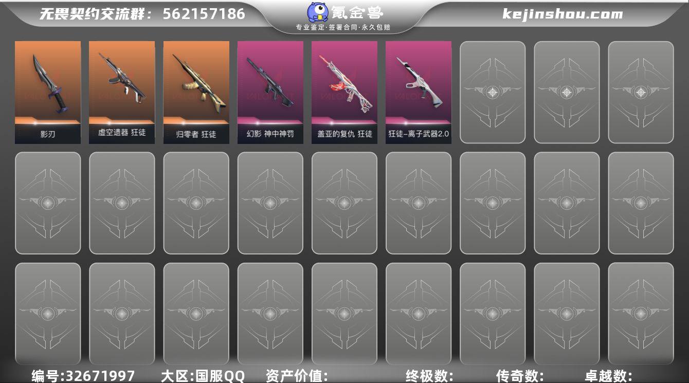 【全主战+特效刀皮精品小号】精品手慢无系列!【可秒换绑 自带包赔】Q193708 无畏契约/等级92/段位未定级/英雄21/皮肤12/资产9630/已使用R点370/剩余R点215/影刃,虚空遗器-狂徒,归零者-狂徒,神中神罚-幻影,离子武器//2.0-狂徒,盖亚的复仇-狂徒