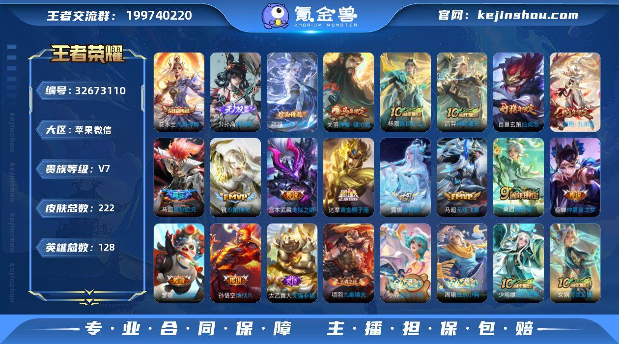 苹果WX-V7-最强王者段位-126英雄-201皮肤-1典藏皮肤-11传说-60史诗