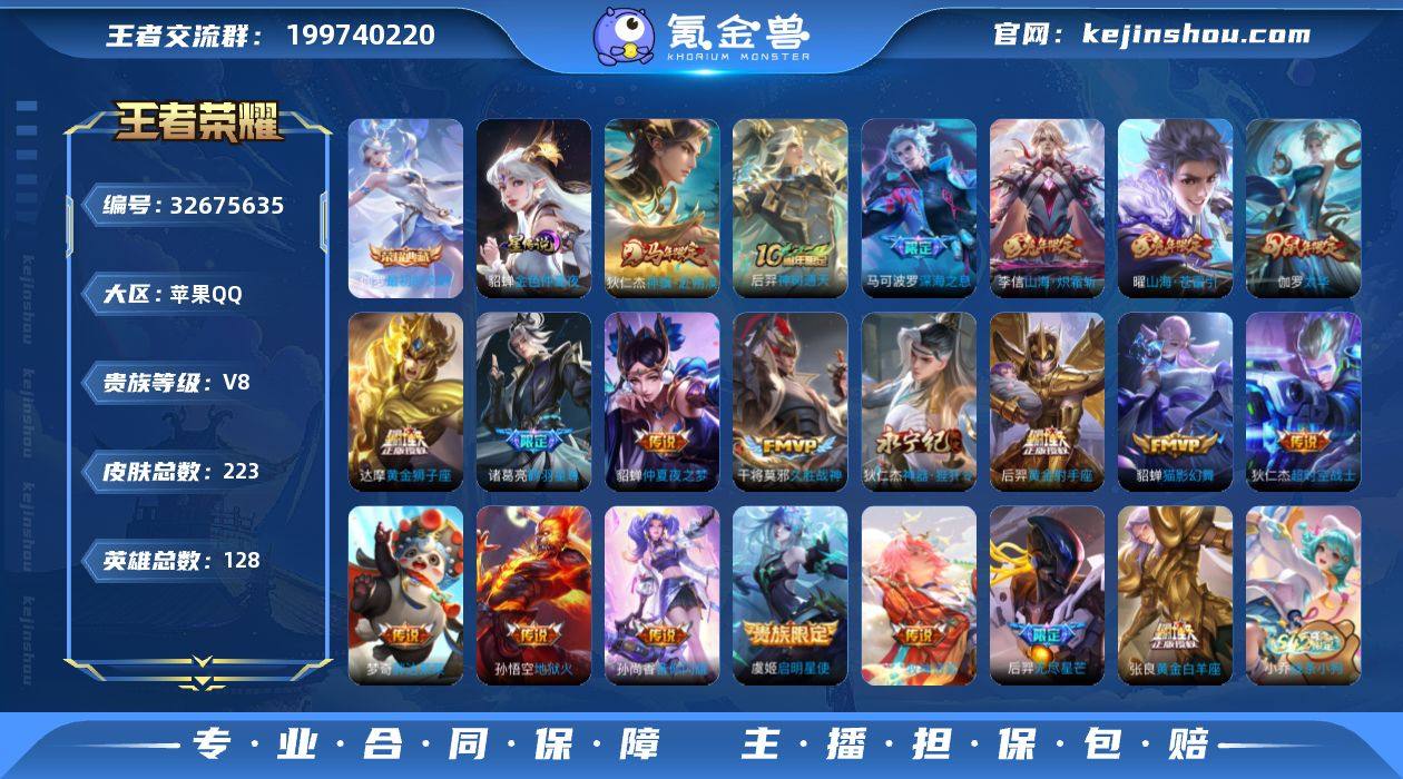 【特价急出/详情看图】苹果Q-V8-最强王者段位-128英雄-223皮肤-1典藏皮肤-1星元-21传说-63史诗 【英雄全皮】:孙权全皮 【荣耀典藏】:伽罗最初的交响 【传说皮肤】:狄仁杰神骥赴朔漠,后羿神树通天,庄周牧神诗旅,诸葛亮鹤羽星尊,曜山海苍雷引,李信山海炽霜斩,狄仁杰神器狴犴令,孙尚香音你闪耀,马可波罗深海之息,后羿无尽星芒,虞姬启明星使,伽罗太华,貂蝉猫影幻舞,张良黄金白羊座,干将莫邪久胜战神,达摩黄金狮子座,梦奇胖达荣荣,后羿黄金射手座,貂蝉仲夏夜之梦,孙悟空地狱火,狄仁杰超时空战士 【限定皮肤】:白起狰,狄仁杰阴阳师,虞姬凯尔特女王,赵云皇家上将,妲己热情桑巴,妲己时之彼端,孙尚香蔷薇恋人,庄周蜃楼王,孙膑妖精王,芈月重明,芈月白晶晶,吕布猎兽之王,周瑜赤莲之焰,元歌无心,夏侯惇朔风刀,夏侯惇匿光决锋者,典韦岱宗,马可波罗暗影游猎,马可波罗深海之息,狄仁杰魔术师,狄仁杰万华元夜,狄仁杰神器狴犴令,项羽海滩派对,老夫子醍醐杖,程咬金演武夺筹,兰陵王金庭之子,亚瑟狮心王,后羿如梦令,后羿无尽星芒,李元芳银河之约,李元芳匿光侦查者,李元芳云中旅人,虞姬启明星使,钟馗神迹守卫,干将莫邪冰霜恋舞曲,蔡文姬...
