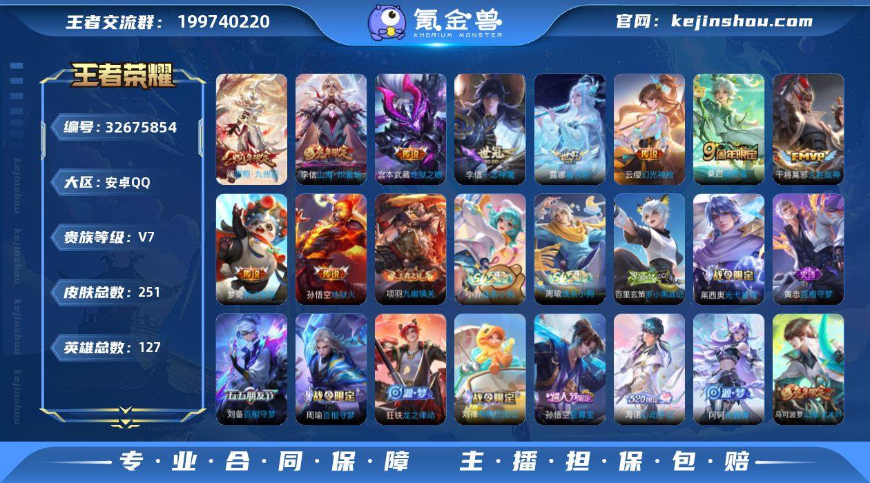 安卓Q-V7-最强王者段位-127英雄-251皮肤-10传说-60史诗 【英雄全皮】:孙权全皮,敖隐全皮,蒙恬全皮,空空儿全皮,海诺全皮 【传说皮肤】:澜愿照九州拓,云缨幻光神枪,桑启鸣野蒿,露娜霜月吟,李信山海炽霜斩,李信一念神魔,干将莫邪久胜战神,梦奇胖达荣荣,宫本武藏地狱之眼,孙悟空地狱火 【限定皮肤】:狄仁杰阴阳师,赵云皇家上将,孙尚香蔷薇恋人,扁鹊奇幻香踪,芈月白晶晶,元歌云间偶戏,元歌无心,马可波罗山海玄木吟,狄仁杰魔术师,项羽海滩派对,孙悟空美猴王,孙悟空至尊宝,刘备百相守梦,李元芳云中旅人,杨戬潮玩骑兵,干将莫邪胡桃夹子,鬼谷子五谷丰年,沈梦溪大漠名商,裴擒虎李小龙,裴擒虎擒涛扼浪,米莱狄胡桃异想国,云中君纤云弄巧,李信山海炽霜斩,嫦娥暖冬兔眠,鲁班大师探海日志,桑启海盐诗旅,暃星界游侠,阿古朵江河有灵,张良古海寻踪,蒙恬荣光圣徽,妲己灵卜魔法,鬼谷子天穹祈灯,沈梦溪龙舞盛年,鲁班七号蔬乡物语,李元芳蔬乡物语,刘邦剑破天穹,程咬金群星魔术团,海诺心动手记 【年限皮肤】:孙悟空美猴王,李信山海炽霜斩,马可波罗山海玄木吟,澜愿照九州拓 【赛季限定】:沈梦溪大漠名商,李元芳云中旅人,桑启海盐诗旅,裴...