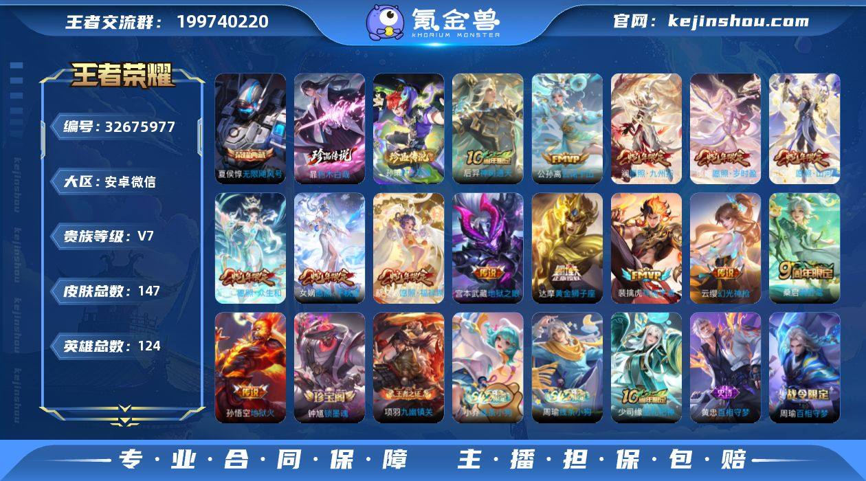 安卓WX-V7-最强王者段位-124英雄-147皮肤-1典藏皮肤-2珍品传说-14传说-41史诗