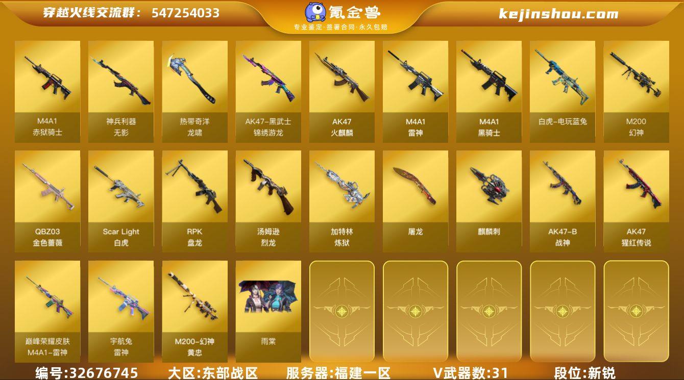 QF-3250-东部幻神带冠军皮 黄忠皮 白虎 白虎电玩蓝兔 qbz 六烈龙+斯太尔蝴蝶 六盘龙+一炼狱带32v武器