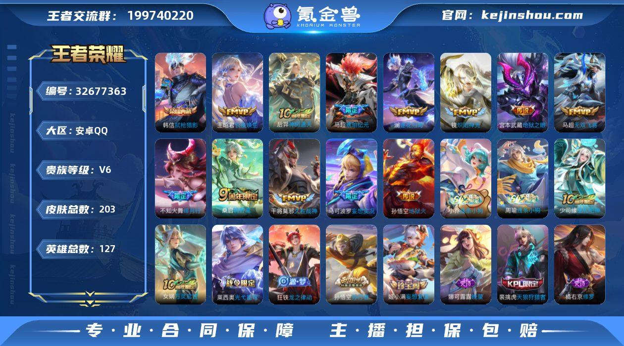 【aswz1807】安卓Q-V6-至尊星耀V段位-127英雄-203皮肤-1典藏皮肤-12传说-54史诗 【荣耀典藏】:韩信弑枪猎影 【传说皮肤】:王昭君长夜焕生,后羿神树通天,桑启鸣野蒿,马超琥珀纪元,澜逐花归海,马可波罗妄想实况,不知火舞绯月行,马超无双飞将,镜炽阳神光,干将莫邪久胜战神,宫本武藏地狱之眼,孙悟空地狱火 【限定皮肤】:白起狰,姜子牙天穹之誓,狄仁杰阴阳师,虞姬凯尔特女王,赵云皇家上将,孙尚香蔷薇恋人,高渐离死亡摇滚,芈月重明,周瑜赤莲之焰,元歌无心,曹操烛龙,马可波罗妄想实况,狄仁杰魔术师,狄仁杰万华元夜,项羽海滩派对,老夫子醍醐杖,老夫子航海奇遇记,程咬金演武夺筹,不知火舞绯月行,孙悟空孙行者,牛魔御旌,李元芳云中旅人,钟馗驱傩正仪,雅典娜单词大作战,鬼谷子原初探秘者,鬼谷子五谷丰年,百里玄策原初追逐者,梦奇顽趣,沈梦溪大漠名商,明世隐疑决卦,裴擒虎天狼狩猎者,裴擒虎李小龙,裴擒虎擒涛扼浪,云中君纤云弄巧,盾山御銮,嫦娥暖冬兔眠,西施玲珑珍味,蒙犽狂想玩偶喵,鲁班大师探海日志,桑启海盐诗旅,暃星界游侠,戈娅驭风魔法,张良古海寻踪,蒙恬荣光圣徽,鬼谷子天穹祈灯,马超琥珀纪元,姬小满妄想食味,沈梦溪...