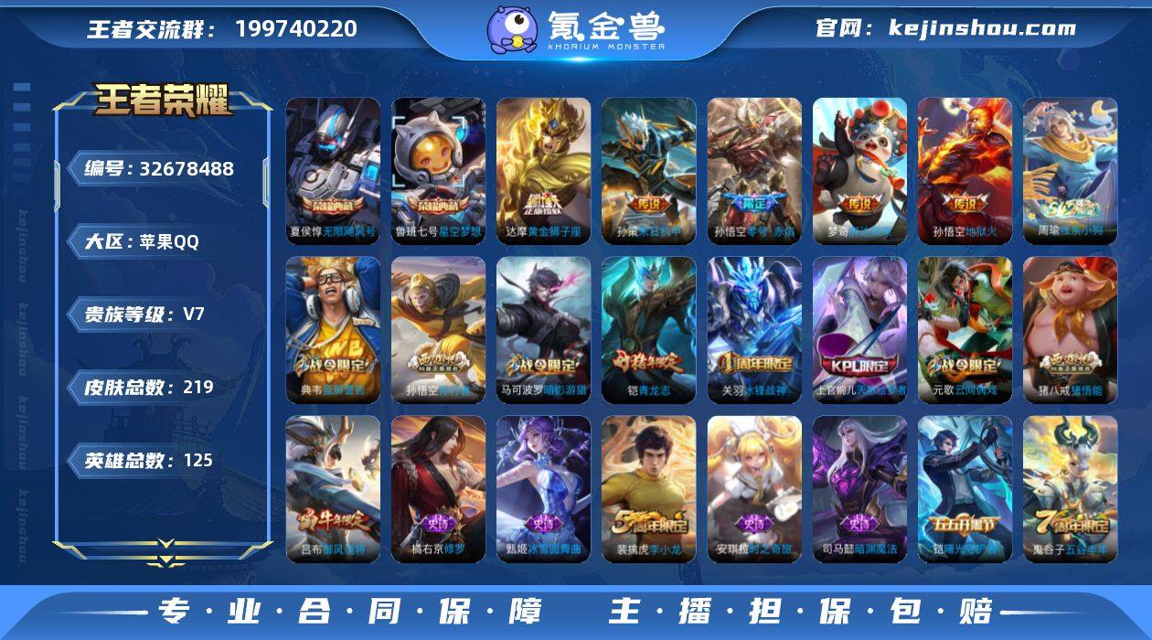 苹果Q-V7-至尊星耀V段位-125英雄-219皮肤-2典藏皮肤-5传说-57史诗 【英雄全皮】:猪八戒全皮 【荣耀典藏】:夏侯惇无限飓风号,鲁班七号星空梦想 【传说皮肤】:孙策末日机甲,孙悟空零号赤焰,达摩黄金狮子座,梦奇胖达荣荣,孙悟空地狱火 【限定皮肤】:白起狰,狄仁杰阴阳师,虞姬凯尔特女王,赵云皇家上将,嬴政白昼王子,孙尚香蔷薇恋人,鲁班七号狮舞东方,庄周高山流水,高渐离死亡摇滚,高渐离玩趣恶龙,孙膑妖精王,扁鹊炼金王,芈月重明,吕布猎兽之王,吕布御风骁将,元歌云间偶戏,夏侯惇朔风刀,夏侯惇匿光决锋者,甄姬游园惊梦,曹操烛龙,典韦穷奇,典韦蓝屏警告,马可波罗暗影游猎,狄仁杰魔术师,狄仁杰万华元夜,达摩沙漠行僧,项羽海滩派对,项羽霸王别姬,老夫子醍醐杖,关羽冰锋战神,程咬金演武夺筹,兰陵王金庭之子,亚瑟潮玩骑士王,孙悟空零号赤焰,孙悟空孙行者,牛魔御旌,后羿圣弓游侠,李元芳云中旅人,虞姬霸王别姬,钟馗神迹守卫,钟馗驱傩正仪,杨玉环遇见飞天,女娲朔望之晖,干将莫邪真爱魔法,雅典娜黎明之约,太乙真人饕餮,东皇太一逐梦之光,鬼谷子原初探秘者,鬼谷子五谷丰年,铠青龙志,苏烈千军破阵,百里玄策原初追逐者,弈星混沌...