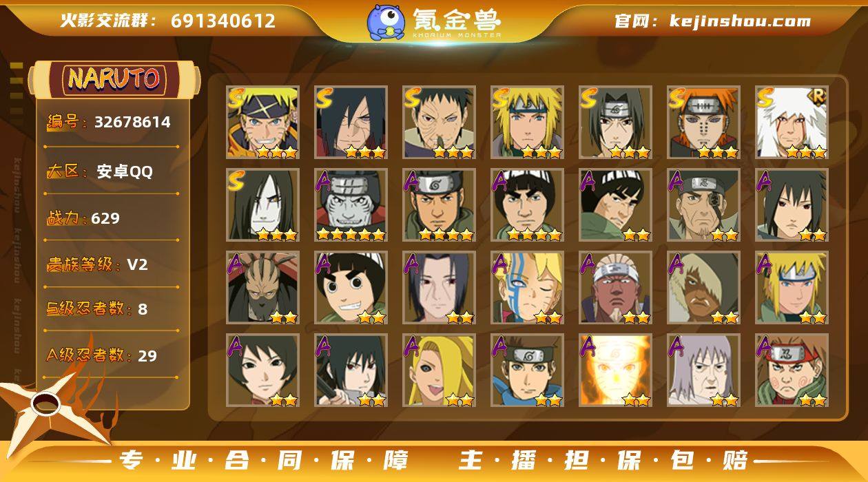8S级忍者数-29A级忍者数 【S级忍者】:宇智波斑「秽土转生·解」(3星),宇智波带土「忍界大战」(3星),宇智波鼬「须佐能乎」(3星),自来也「舞之豪杰」(3星),大蛇丸(3星),波风水门(3星),佩恩「天道」(3星),漩涡鸣人·宇智波佐助(3星) 【A级忍者】:艾「青年」(2星),波风水门「青年」(2星),达鲁伊「博人传」(2星),迪达拉「秽土转生」(2星),大蛇丸「晓」(2星),飞段(2星),飞段「死司凭血」(2星),干柿鬼鲛(5星),漩涡博人「桃式显现」(2星),漩涡鸣人「仙人模式」(2星),漩涡鸣人「九尾查克拉」(2星),迈特凯(4星),我爱罗「疾风传」(2星),蝎(2星),蝎「绯流琥」(2星),小南「神驹佑将」(2星),猿飞阿斯玛(4星),宇智波鼬「夏日限定」(2星),宇智波佐助「须佐能乎」(2星),宇智波佐助「万花筒写轮眼」(2星),照美冥「五代目水影」(2星),李洛克「忍界大战」(2星),猿飞木叶丸「博人传」(2星),黑土「博人传」(2星),秋道丁次「忍界大战」(2星),千代「近松十人卫」(2星),土台「忍界大战」(2星),宇智波泉奈(2星),迈特凯「青春爆炸」(2星)