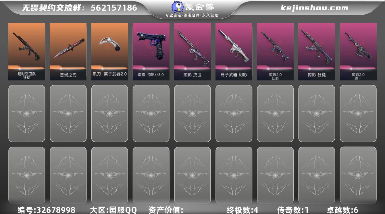 w4741 【精品号】蒙太奇战斧 影蝶 掠影套 悲悯之刃 离子2.0爪刀 超时空狂徒 离子幻影 库存: 20270剩余VP:114剩余R点:15 段位:青铜2