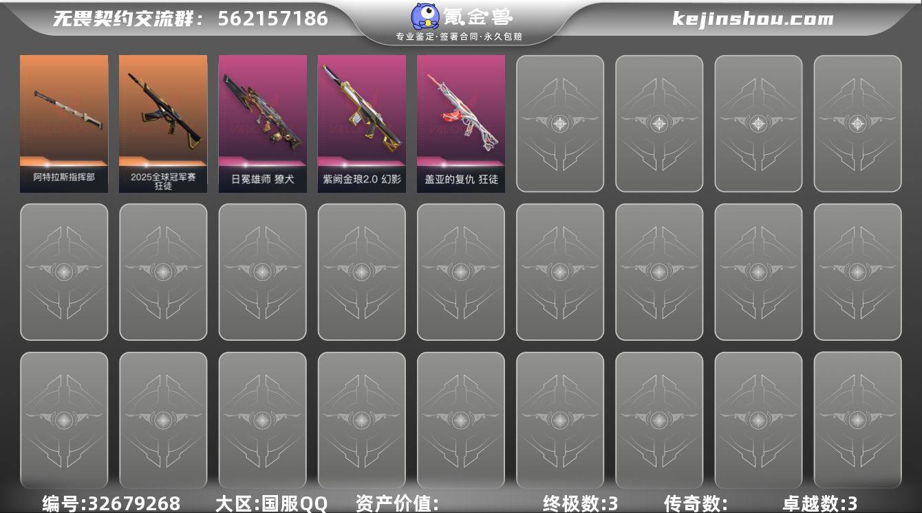 【qyz9688】【包人脸】【玩够能回血】【4枪1刀带紫金爪】 qyz9688 【近战武器】:近战武器-紫金爪刀,近战武器-阿特拉斯指挥部 甩棍 【狂徒】:狂徒-2025全球冠军赛,狂徒-盖亚的复仇 【幻影】:幻影-紫阙金琅//2.0 【獠犬】:獠犬-日冕雄师 【骇灵】:骇灵-无限竞技,骇灵-彩虹魔力小白马 【卡面】:分崩离析 卡面,Clutch 卡面,虹吸式咖啡壶 卡面,无畏契约GO!第一卷:芮娜 卡面,无畏契约GO!第一卷:零 卡面,代号红色 卡面,新兵报到 卡面,V契约 卡面,无畏契约 卡面 【喷漆】:聚合之力 喷漆,双人比心 喷漆,买装还是存钱 喷漆,皇冠拉花 喷漆,胜利属于无畏契约 喷漆,GLHF 喷漆,无畏契约 喷漆 【挂饰】:天外飞客 挂饰,无畏契约 纪念币 挂饰