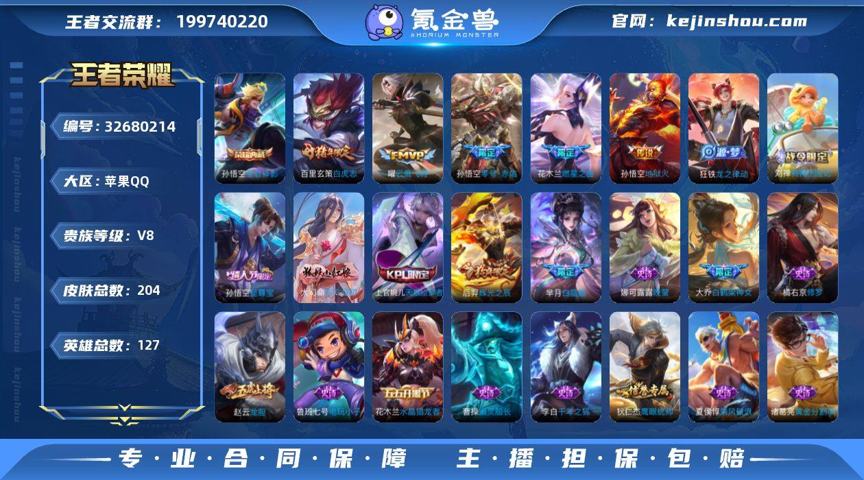 V8 2典藏 9传说 127英雄 204皮肤 可修改实名 男号 【英雄全皮】大禹全皮 【稀有英雄】大司命,嬴政(始皇帝),韩信(韩跳跳),夏洛特(夏师傅),艾琳,橘右京(橘子),娜可露露(鸟人),不知火舞,赵云,金蝉(唐僧),戈娅 【荣耀水晶】颠倒童话·魔镜,全息碎影(猴子典藏) 【传说皮】万灵伏威,零号·赤焰,地狱火,云鹰飞将(小将军),时之恋人-刘备(电焊工),超时空战士-狄仁杰,燃星之曲 【珍宝阁皮】玩趣恶龙 【赛季/战令皮】狰(s8),烛龙(s10),重明(s11),穷奇(s12),御狮(s13),御霄(s14),御旌(s15),御銮(s16),朔风刀(s17),混沌棋(s18),疑决卦(s19),醍醐杖(s20),原初探秘者(s21),万华元夜(s22),演武夺筹(s23),驱傩正仪(s24),千军破阵(s25),朔望之晖,蓝屏警告,神迹守卫-钟馗,狮舞东方,星空之诺,银河之约,潮玩骑士王,云间偶戏,神迹守卫-墨子,航海奇遇记,云中旅人(s29) 【史诗皮】东方月初,蔬乡物语(鲁班七号),万灵启世,鸭鸭历险记-刘禅,涂山容容,龙之律动,紫霞仙子,电玩小子(小书包),黄金分割率,特工魅影,千年之狐,冰冠公主,偶像歌手,晚萤,乱世虎臣,修罗,水果甜心,功夫厨神,幽灵船长,鬼剑武藏,乐园奇幻夜,地狱岩魂,乘风破浪,水晶猎龙者,原初追逐者,圣诞狂欢,圣诞恋歌,鹰眼统帅,魅力维加斯,黎明之约,未...