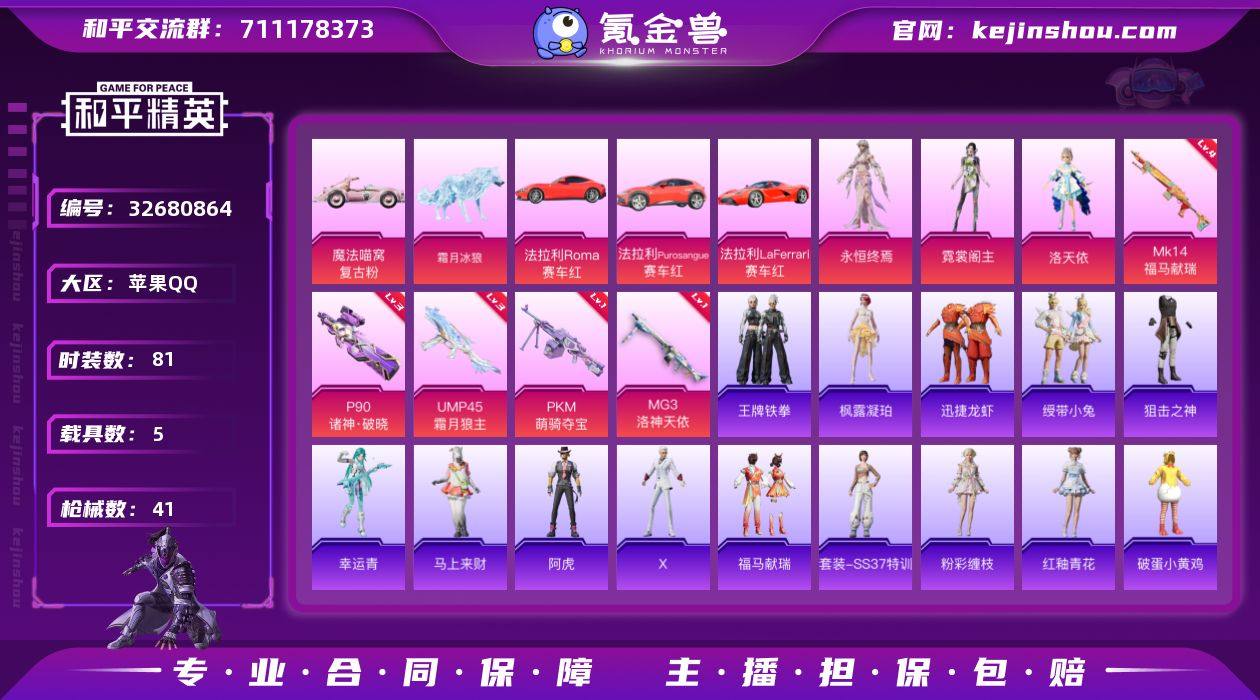 诚信卖价格好商量 3套粉状 五个载具皮肤 5个升级枪 头盔背包基本都是一套 还有一个车币没有用