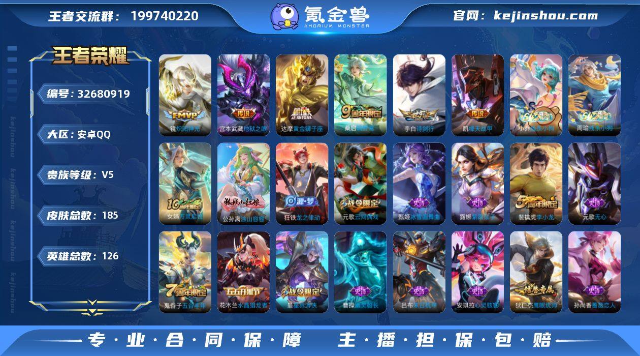 安卓Q-V5-永恒钻石I段位-126英雄-185皮肤-6传说-42史诗 【英雄全皮】:孙权全皮 【传说皮肤】:桑启鸣野蒿,李白诗剑行,铠绛天战甲,镜炽阳神光,达摩黄金狮子座,宫本武藏地狱之眼 【限定皮肤】:姜子牙天穹之誓,狄仁杰阴阳师,赵云皇家上将,孙尚香蔷薇恋人,庄周高山流水,高渐离玩趣恶龙,元歌云间偶戏,元歌无心,狄仁杰万华元夜,达摩沙漠行僧,项羽海滩派对,老夫子醍醐杖,程咬金演武夺筹,兰陵王金庭之子,亚瑟潮玩骑士王,李元芳云中旅人,钟馗驱傩正仪,蔡文姬繁星吟游,鬼谷子原初探秘者,鬼谷子五谷丰年,苏烈千军破阵,沈梦溪大漠名商,明世隐疑决卦,裴擒虎李小龙,裴擒虎擒涛扼浪,上官婉儿梁祝,嫦娥暖冬兔眠,鲁班大师探海日志,桑启海盐诗旅,暃星界游侠,张良古海寻踪,蒙恬荣光圣徽,鬼谷子天穹祈灯,沈梦溪龙舞盛年,刘邦剑破天穹,程咬金群星魔术团,周瑜熔金海岸 【赛季限定】:明世隐疑决卦,老夫子醍醐杖,鬼谷子原初探秘者,狄仁杰万华元夜,程咬金演武夺筹,钟馗驱傩正仪,苏烈千军破阵,达摩沙漠行僧,兰陵王金庭之子,沈梦溪大漠名商,李元芳云中旅人,桑启海盐诗旅,裴擒虎擒涛扼浪,鲁班大师探海日志,张良古海寻踪,鬼谷子天穹祈灯,刘邦...