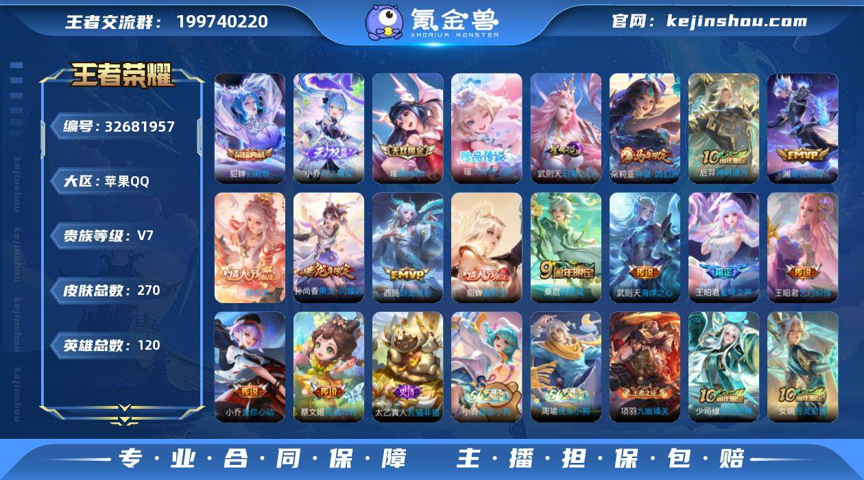 270皮肤,贵族七差几百贵族八,小乔无双,瑶无双➕珍品,貂蝉典藏,西施全皮