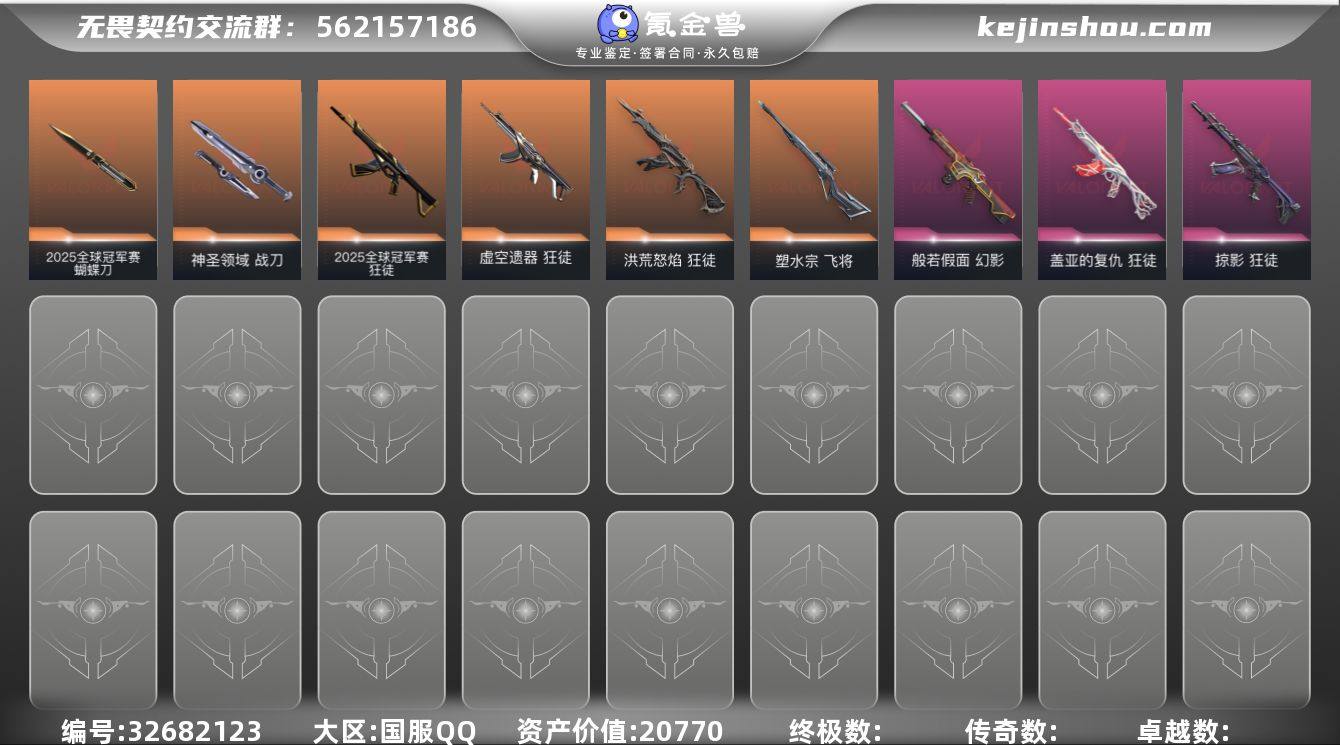 XSQY52【英雄28-皮肤45-皮肤价值20770 2025全球冠军赛套装】【游戏等级】Lv173 【段位】 未定级 【R点】590 【皮肤总价值】20,770 【英雄数量】28 【皮肤数量】45 【挂饰数量】70 【卡面数量】98 【喷漆数量】86 【狂怒】狂怒-蒙太奇 狂怒-神圣领域 【鬼魅】鬼魅-宿怨 鬼魅-幻心猎手 鬼魅-诡秘蛇影 鬼魅-星云暗涌 【幻影】幻影-般若假面 幻影-末日之翼 幻影-神圣领域 【正义】正义-游戏结束 正义-日耀风暴 正义-西部未来 正义-月球哨兵 正义-纳米打击 【狂徒】狂徒-2025全球冠军赛 狂徒-虚空遗器 狂徒-诡秘蛇影 狂徒-掠影 狂徒-盖亚的复仇 狂徒-洪荒怒焰 【近战武器】近战武器-2025全球冠军赛蝴蝶刀 近战武器-诡秘蛇影军刀 近战武器-神圣领域战刀 近战武器-RGX11zPro//3.0爪刀 【标配】标配-星际猎兵 标配-阿特拉斯指挥部 标配-VCT25xEDG 标配-折光棱晶 【骇灵】骇灵-无限竞技 骇灵-星云暗涌 【莽侠】莽侠-诡秘蛇影 莽侠-月球哨兵 【奥丁】奥丁-末日之翼 【戍卫】戍卫-折光棱晶 戍卫-月球哨兵 【飞将】飞将-末日之翼 飞将-塑水宗 【蜂刺】蜂刺-折光棱晶 蜂刺-星云暗涌 【判官】判官-诡秘蛇影 【短炮】短炮-末日之翼 【冥驹】冥驹-星云暗涌 【獠犬】獠犬-神圣领域 【战神】战...