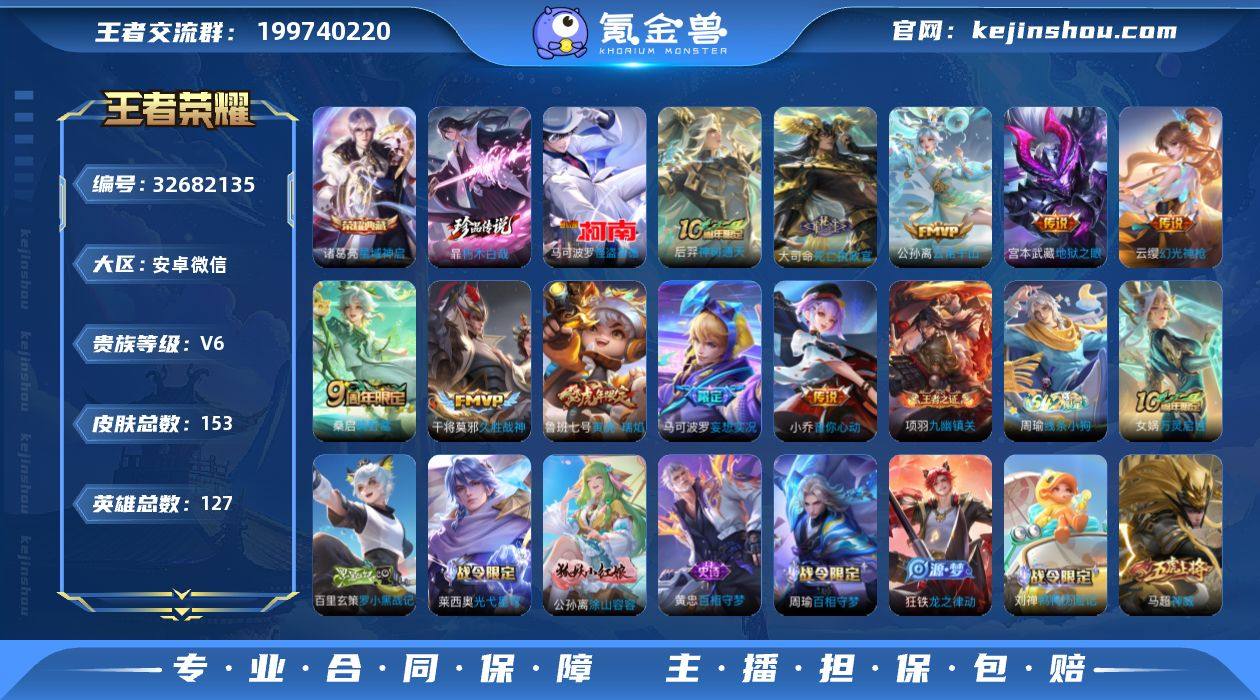 安卓WX-V6-最强王者段位-127英雄-153皮肤-1典藏皮肤-2珍品传说-10传说-54史诗