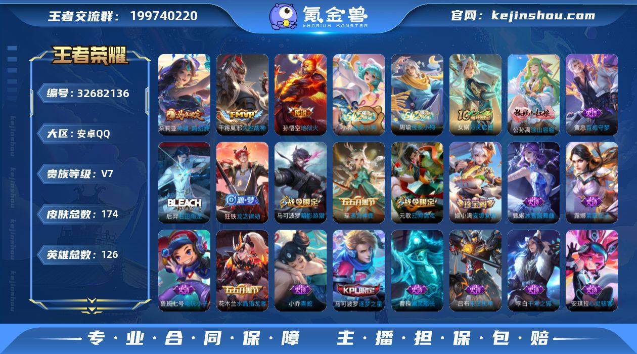 安卓Q-V7-最强王者段位-126英雄-174皮肤-3传说-45史诗 【传说皮肤】:朵莉亚神骥鸣幻洲,干将莫邪久胜战神,孙悟空地狱火 【限定皮肤】:狄仁杰阴阳师,赵云皇家上将,庄周云端筑梦师,孙膑天狼运算者,芈月重明,元歌云间偶戏,夏侯惇朔风刀,曹操烛龙,典韦穷奇,马可波罗逐梦之星,马可波罗暗影游猎,狄仁杰魔术师,狄仁杰万华元夜,项羽海滩派对,老夫子醍醐杖,程咬金演武夺筹,兰陵王金庭之子,亚瑟潮玩骑士王,牛魔御旌,李元芳云中旅人,钟馗驱傩正仪,杨玉环遇见飞天,雅典娜单词大作战,雅典娜黎明之约,鬼谷子原初探秘者,弈星混沌棋,明世隐疑决卦,裴擒虎擒涛扼浪,狂铁御狮,米莱狄御霄,云中君纤云弄巧,盾山御銮,猪八戒西部大镖客,上官婉儿梁祝,蒙犽狂想玩偶喵,张良古海寻踪,姬小满妄想食味,沈梦溪龙舞盛年,刘邦剑破天穹 【赛季限定】:曹操烛龙,芈月重明,典韦穷奇,狂铁御狮,米莱狄御霄,牛魔御旌,盾山御銮,夏侯惇朔风刀,弈星混沌棋,明世隐疑决卦,老夫子醍醐杖,鬼谷子原初探秘者,狄仁杰万华元夜,程咬金演武夺筹,钟馗驱傩正仪,兰陵王金庭之子,李元芳云中旅人,裴擒虎擒涛扼浪,张良古海寻踪,刘邦剑破天穹,钟馗虚灵犬护,甄姬逆浪荇歌...