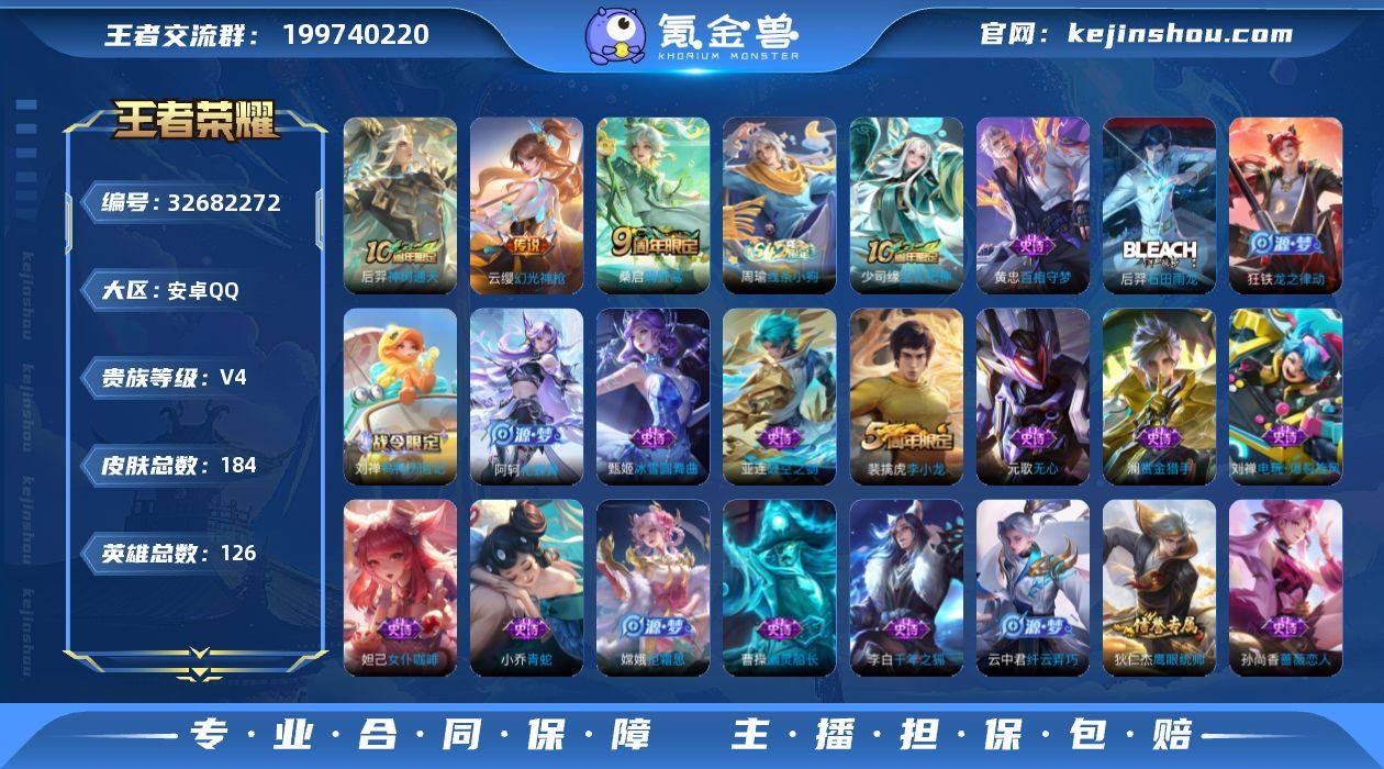 安卓Q-V4-尊贵铂金I段位-126英雄-184皮肤-3传说-38史诗 【英雄全皮】:孙权全皮,影全皮 【传说皮肤】:后羿神树通天,云缨幻光神枪,桑启鸣野蒿 【限定皮肤】:蒙犽顽岩魄,大乔绒语心约,姜子牙天穹之誓,狄仁杰阴阳师,赵云皇家上将,孙尚香蔷薇恋人,元歌无心,项羽海滩派对,李元芳云中旅人,裴擒虎李小龙,裴擒虎擒涛扼浪,云中君纤云弄巧,嫦娥拒霜思,鲁班大师探海日志,桑启海盐诗旅,艾琳女武神,阿古朵江河有灵,张良古海寻踪,蒙犽百解令,鬼谷子天穹祈灯,沈梦溪龙舞盛年,刘邦剑破天穹,刘备异域游侠,周瑜熔金海岸 【赛季限定】:李元芳云中旅人,桑启海盐诗旅,裴擒虎擒涛扼浪,鲁班大师探海日志,张良古海寻踪,鬼谷子天穹祈灯,刘邦剑破天穹,姜子牙天穹之誓,东皇太一噬灭天穹,太乙真人谧流熔炉,钟馗虚灵犬护,甄姬逆浪荇歌,亚瑟荣光之誓 【战令限定】:亚连破空之剑,孙悟空神迹守卫,刘禅鸭鸭历险记,沈梦溪鸭鸭历险记,周瑜线条小狗 【史诗皮肤】:周瑜线条小狗,少司缘巫礼祀神,黄忠百相守梦,后羿石田雨龙,狂铁龙之律动,刘禅鸭鸭历险记,阿轲化蝶舞,亚连破空之剑,蒙犽顽岩魄,蒙犽百解令,阿古朵江河有灵,刘禅电玩爆裂旋风,元歌无心,澜赏...