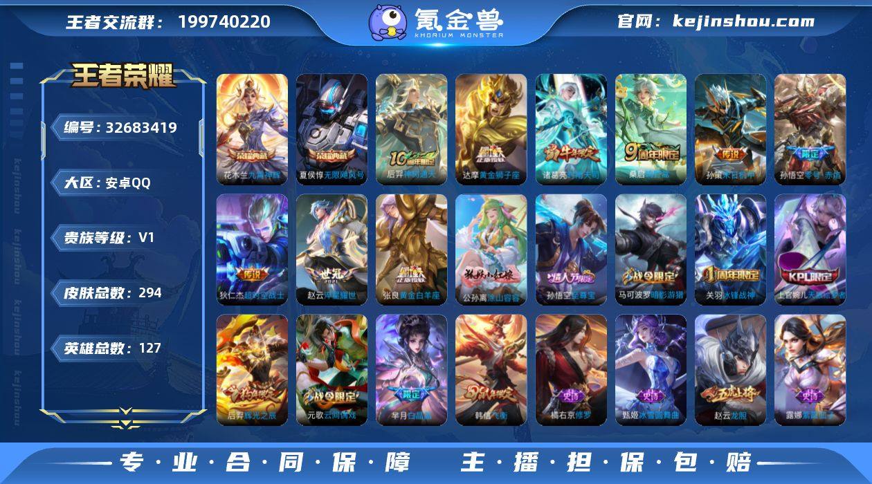 安卓Q-V0-尊贵铂金II段位-127英雄-294皮肤-2典藏皮肤-9传说-93史诗 【荣耀典藏】:夏侯惇无限飓风号,花木兰九霄神辉 【传说皮肤】:后羿神树通天,桑启鸣野蒿,孙策末日机甲,赵云淬星耀世,诸葛亮时雨天司,孙悟空零号赤焰,张良黄金白羊座,达摩黄金狮子座,狄仁杰超时空战士 【限定皮肤】:姜子牙天穹之誓,狄仁杰阴阳师,廉颇寅虎御盾,赵云皇家上将,赵云龙胆,墨子神迹守卫,嬴政优雅恋人,鲁班七号狮舞东方,庄周云端筑梦师,庄周高山流水,高渐离玩趣恶龙,阿轲迷踪丽影,钟无艳王者之锤,孙膑天狼运算者,孙膑寅虎展翼,白起夜都怪侠,芈月重明,芈月白晶晶,芈月幻夜卜梦,周瑜赤莲之焰,元歌云间偶戏,夏侯惇朔风刀,甄姬游园惊梦,曹操烛龙,典韦穷奇,马可波罗暗影游猎,狄仁杰魔术师,狄仁杰万华元夜,达摩星际陆战队,达摩沙漠行僧,项羽海滩派对,老夫子醍醐杖,老夫子航海奇遇记,关羽冰锋战神,程咬金演武夺筹,刘邦夺宝奇兵,韩信飞衡,王昭君午后时光,兰陵王金庭之子,亚瑟潮玩骑士王,孙悟空至尊宝,孙悟空零号赤焰,牛魔御旌,后羿辉光之辰,后羿圣弓游侠,李元芳银河之约,李元芳云中旅人,虞姬霸王别姬,钟馗神迹守卫,钟馗驱傩正仪,杨玉环遇见飞...