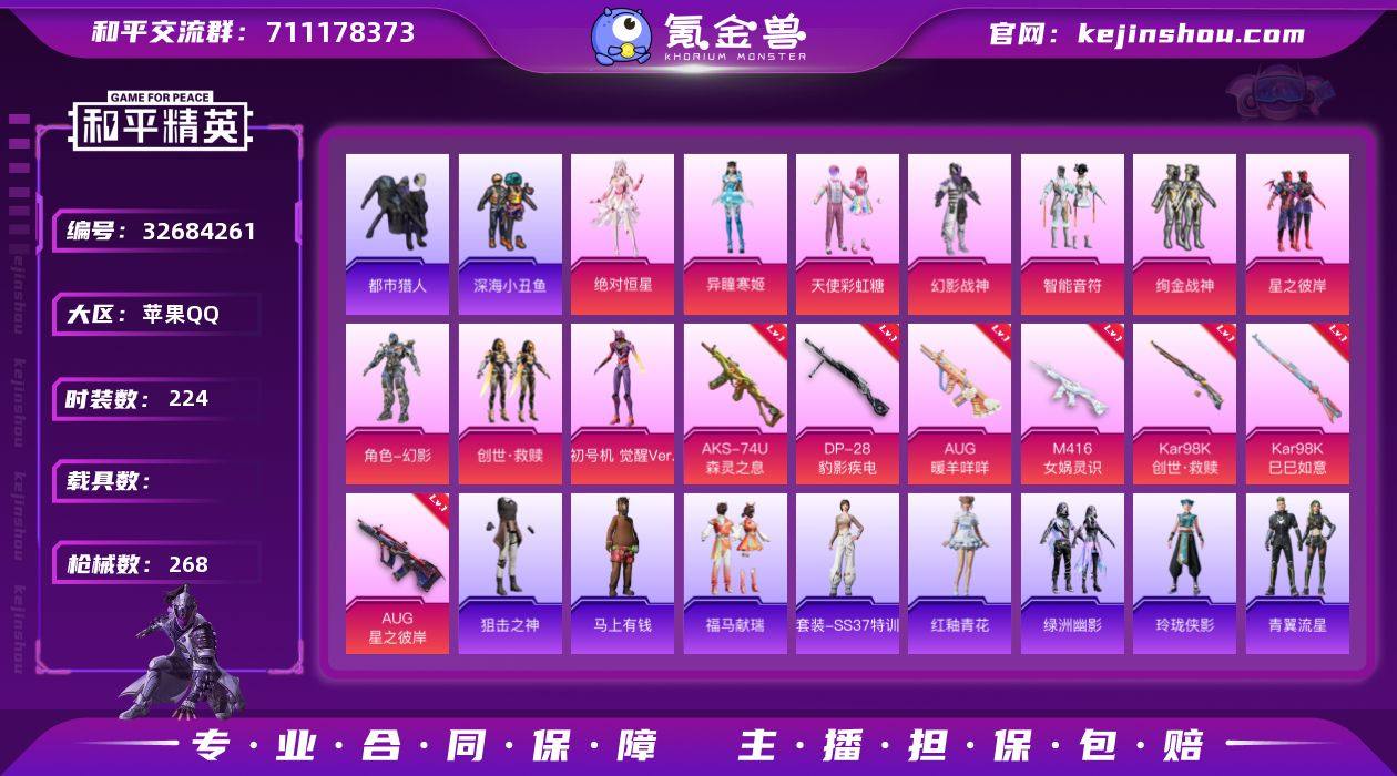 可二次实名【觉醒螳螂绚金战神M4女娲灵识9粉装9特效枪 秒换绑不用等】 苹果Q区-85633热力值-224套装-268枪皮 【4稀有】 都市猎人 红眼罩 Mark.06蓝螳螂 8号机粉螳螂【9粉装】 角色-初号机 觉醒Ver. 天使彩虹糖 绚金战神 星之彼岸 绝对恒星 幻影战神 智能音符 创世·救赎 角色-异瞳寒姬【9特效枪】 M416-女娲灵识(3级) AKS-74U-森灵之息(5级) Mk14-福马献瑞(5级) UMP45-萌骑冒险(2级) AUG-星之彼岸(4级) Kar98K-创世·救赎(7级) Kar98K-巳巳如意(5级) AUG-暖羊咩咩(5级) DP-28-豹影疾电(5级)【271热门】 深海小丑鱼 暗影哥特(红眼罩) 浪漫天命 都市猎人(蓝口罩) 雪山精英(老6服) 好奇恐龙 小丑鱼 迅捷狂鲨 英勇保护者 极速红龙 忍者信条 冰川格斗者 白色伏地魔 SS9特训 SS8特训 SS6特训 SS3特训 SS2特训 SS27特训 SS26特训 SS25特训 SS24特训 SS23特训 SS22特训 SS10特训 M762-乌木金纹 AWM-雷霆特警 M416-乌木金纹 GROZA-乌木金纹 AKM-环太平洋 SCAR-L-玉兔迎春 AUG-幻影战神 M762-天降萌叽 M762-彩虹符号 Mk47-乌木金纹 M416-夜灯 UMP45-蓝色火焰 MG3-幻世战舞者 AKM-霓虹街区 AKM-星之彼岸 呆萌铁蟹 鹰眼刺客 M416-蓝色火焰 GROZA-彩虹符号 破蛋小黄鸡 长空猛禽 弄潮海豚 迎春...
