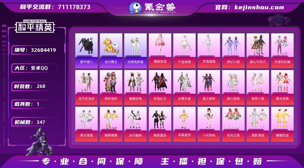 【战神框4钻苏尔南手枪巡查衣金鞋都市猎人天网糯粉咩咩软软马卡龙红眼罩小熊背包 25粉装14特效枪1载具素材号 秒换绑不用等】 安卓Q区-121884热力值-历史最高段位:无敌战神-268套装-347枪皮 【1载具】 路特斯EV黄色【8稀有】 都市猎人 派对舞王(金靴子) 萌熊伴侣背包(小熊背包) 巡查衣 天网终结者 糯粉咩咩 软软马卡龙 红眼罩【25粉装】 甜梦小狐 梦幻火箭 宝贝奶油派 天使彩虹糖 甜心巧克力 缤纷油彩(猪脸妹) 童趣迷兔 冰霜白皇 暖熊萌萌 星之彼岸 甜心娃娃 寒光使者 暖暖奶龙 炫光之旅 莲影清波 炙焰红王 霞光圣骑 暗夜鎏金 呆萌星弥 小可学妹 冰川幽秘 角色-樱桃泡泡 角色-荧海星豚 角色-千金淑猫【14特效枪】 M416-心之恋语(7级) AKM-梦之光华(7级) Mk14-福马献瑞(5级) AA12-G-萌骑幻想(2级) SCAR-L-锦绣绵绵(5级) SCAR-L-童趣迷兔(7级) Vector-环太平洋(7级) AKM-绿萝繁花(5级) 蜜獾-荧海星豚(7级) SVD-月影灵韵(6级) Kar98K-巳巳如意(5级) AUG-暖羊咩咩(5级) DP-28-豹影疾电(5级) UMP45-量子极限(5级)【312热门】 暗影哥特(红眼罩) 浪漫天命 都市猎人(蓝口罩) 雪山精英(老6服) 潮萌小黄鸭 激萌罗小黑 军刀雅典娜 团圆交子 瑞龙福将 豚鼠丹丹 冰公主 白色伏地魔 SS9...