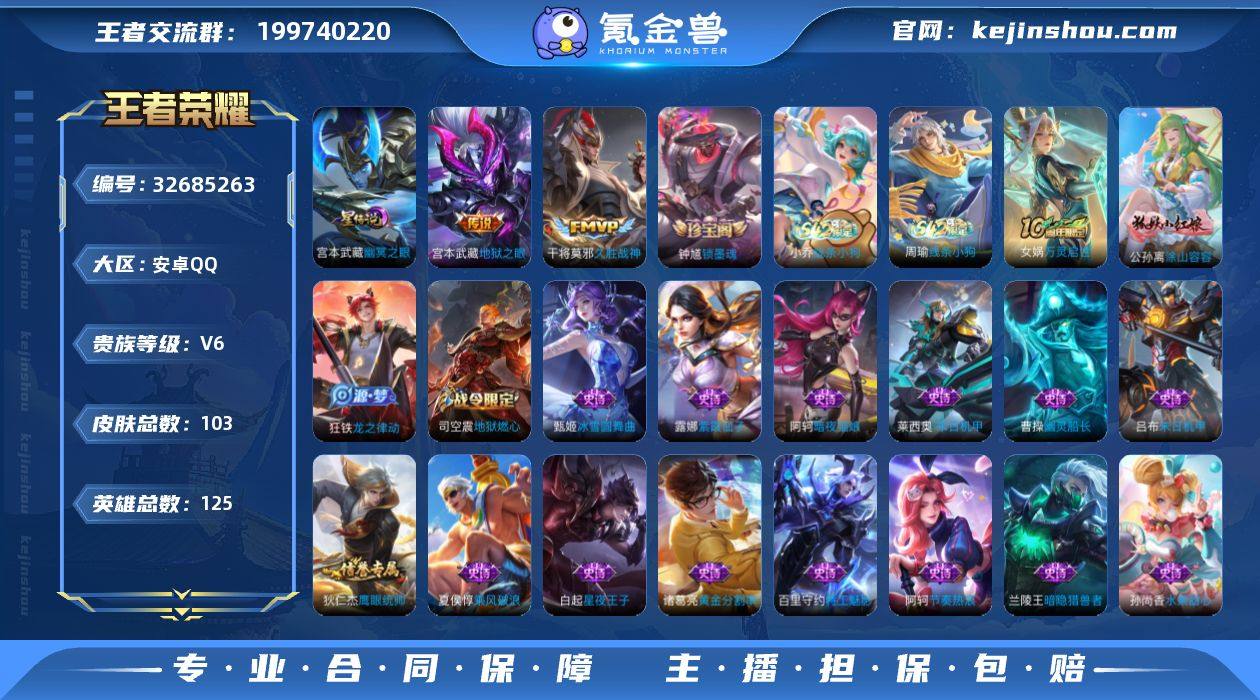 【W6353】品质打野号.地狱之眼幽冥之眼星元.FMVP久胜战神.地狱然心.暗夜猫娘.紫霞仙子.幽灵船长.黄金分割率.街头霸王.兔女郎-安卓Q-有二次-贵6-125英雄-103皮肤-2传说-32限定-31史诗-1星元-1按键-187夺宝幸运值-1印记-贵族积分10149-营地ID:1740970689 【星元皮肤】:宫本武藏幽冥之眼