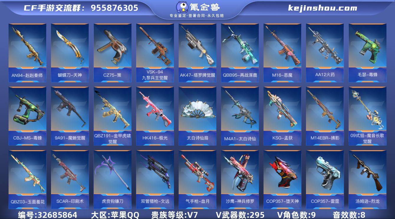 VIP7/295V/文远套/策套装/王者之影/王者之神/王者之蝶/王者之霆/KSG-孟获/CZS2-仲康/AN94-盖/AK47-策/SCAR-文远/M4A1-仲达/AK47-奉先/M4A1游骑兵/M200-幻神/AWM-妙才/AWM-游骑兵/81式-阿波罗/COP357-雷霆/COP357-堕天神/SCAR-文远-过载/M4A1-游骑兵-寒霜/M4A1-游骑兵-紫魇/王者之神-冰霜奇迹/王者之神-HeartShot/巴雷特-毁灭-现代战场/M4A1-仲达-现代战场/MK47-鼓龙-嘴炮/王者之武-现代战场/M4A1-雷神-电音/98K-星神-电音/AK47-火麒麟-电音/王者之神-现代战场/狙击枪线-HeartShot/狙击枪线-黑化/狙击枪线-字/AWM-裁决-流光之线/98K-星神-漫游之线/葵/樱/关小雨/乔月/职场灵狐赛事经理/零水下丽影/炽天使-X/零-新生/虹儿/AK47-火麒麟/AK47-樱斗士-一觉/AK47-沙漠郡主-超觉/AK47-燎天净火/AK47-血武士/AK47-黑鲨/AK47-塔罗牌觉醒/AK47-谜城烟火/M4A1-雷神/M4A1-黑骑士/M4A1-黑龙/M4A1-死神/M4A1-玫瑰精灵/M4A1-卧龙觉醒/M4A1-Rush-夜袭/M4A1-堕天神/M4A1-运输船/M4A1-千变/M4A1-太白诗仙/SCAR-幽暗骑士/SCAR-探星者/SCAR-印刷术/SCAR-心动PICK/AN94-超新星/AN94-赳赳秦师/AUG-机械纪元/FAMAS-湮灭/9A91-天神/9A91-魔蜥觉醒/M14EBR-拂影/M14EBR-葫芦山庄/M16-恶魔/AK12-天启/QBZ...