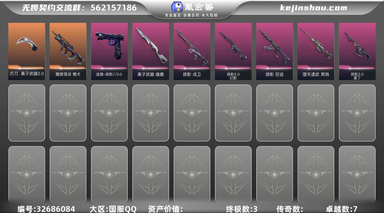 【套装】:W14895 可立即换绑无需挂单养号 回火礼包:掠影套装,掠影//3.0套装 【英雄】:幻棱,炼狱,维斯,钛狐,捷风,幽影,不死鸟,贤者,猎枭,芮娜,奇乐,霓虹,夜露,黑梦 【近战武器】:近战武器-影蝶,近战武器-离子武器//2.0 爪刀 【狂徒】:狂徒-掠影 【幻影】:幻影-掠影//2.0 【戍卫】:戍卫-掠影 【獠犬】:獠犬-黯夜怪谈 【冥驹】:冥驹-堕天遗武 【奥丁】:奥丁-掠影//2.0 【雄鹿】:雄鹿-离子武器 【追猎】:追猎-掠影//3.0 【卡面】:正义的化身 卡面,无畏契约GO!第一卷:零 卡面,铁臂设计图 卡面,代号红色 卡面,冰淇淋店 卡面,新兵报到 卡面,友军火力 卡面,V契约 卡面,无畏契约 卡面 【喷漆】:买装还是存钱 喷漆,胜利属于无畏契约 喷漆,GLHF 喷漆,无畏契约 喷漆 【挂饰】:第九季//第二幕 纪念币 挂饰,第七季//第二幕 纪念币 挂饰,无畏契约 纪念币 挂饰