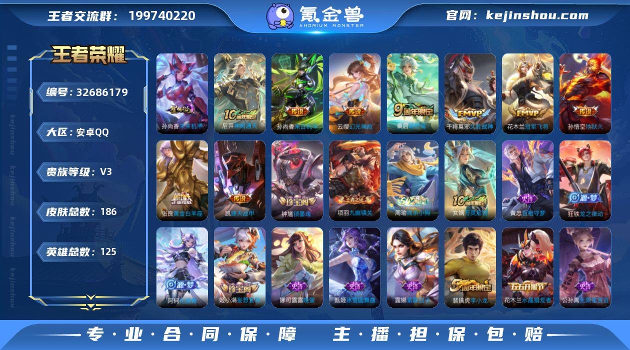 【W6370】安卓QQ-有二次-贵3-125英雄-186皮肤-9传说-1星元-48限定-4按键-灵宝-10印记-950贵族积分-营地1793833129-热门皮肤-云缨幻光神枪,铠绛天战甲,张良黄金白羊座,干将莫邪久胜战神,花木兰冠军飞将,孙尚香末日机甲,孙悟空地狱火,公孙离无限星赏官 【星元皮肤】:孙尚香未来机甲
