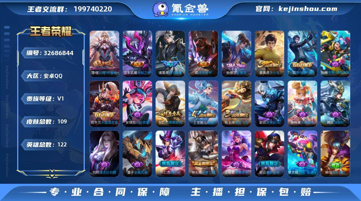 【XY967】贵族0/皮肤109/传说4/史诗19/英雄122/鹤羽星尊/山海·炽霜斩/绛天战甲/地狱之眼/狰(s8)/阴阳师/凯尔特女王(s7)/皇家上将/王者之锤/炼金王(s6)/重明(s11)/朔风刀(s17)/烛龙(s10)/魔术师/万华元夜(s22)/沙漠行僧(s26)/海滩派对/醍醐杖(s20)/演武夺筹(s23)/至尊宝/驱傩正仪(s24)/遇见飞天/饕餮(s9)/原初探秘者(s21)/混沌棋(s18)/疑决卦(s19)/李小龙/擒涛扼浪(s31)/御狮(s13)/御霄(s14)/御銮(s16)/梁祝/探海日志(s32)/海盐诗旅(s30)/谧流熔炉/电玩·爆裂旋风/电玩·兔顽号/鹰眼统帅/曙光守护者/心灵骇客/德古拉伯爵/水晶猎龙者/白龙吟/金属风暴/水果甜心/偶像歌手/未来纪元-赵云/铁骨偃魂/苍林狼骑/功夫炙烤/妄想特派/劲辣红锅/潮玩探月行/无双福将/缤纷绘卷/野性能量/虹云星官/坚韧之力/幻乐之宴/掌控之力/功夫老勺/命运角斗场/霸王丸/海滩丽影/龙腾万里/汉昭烈帝/阿尔法小队/花好人间/兔女郎/拳王/黄金武士/少女阿狸/玩偶对对碰/未来纪元-宫本武藏/化身博士/白色死神/爱心护理/致命风华/街头霸王/教廷特使/赤焰之缨/归虚梦演-蒙犽/归虚梦演-西施/荷鲁斯之眼/森/创世神祝/年年有余/棒球奇才/魇语军师/海之征途/街头旋风/花间舞/爱与和平/龙域领主/东海龙王/伊势巫女/芝加哥...