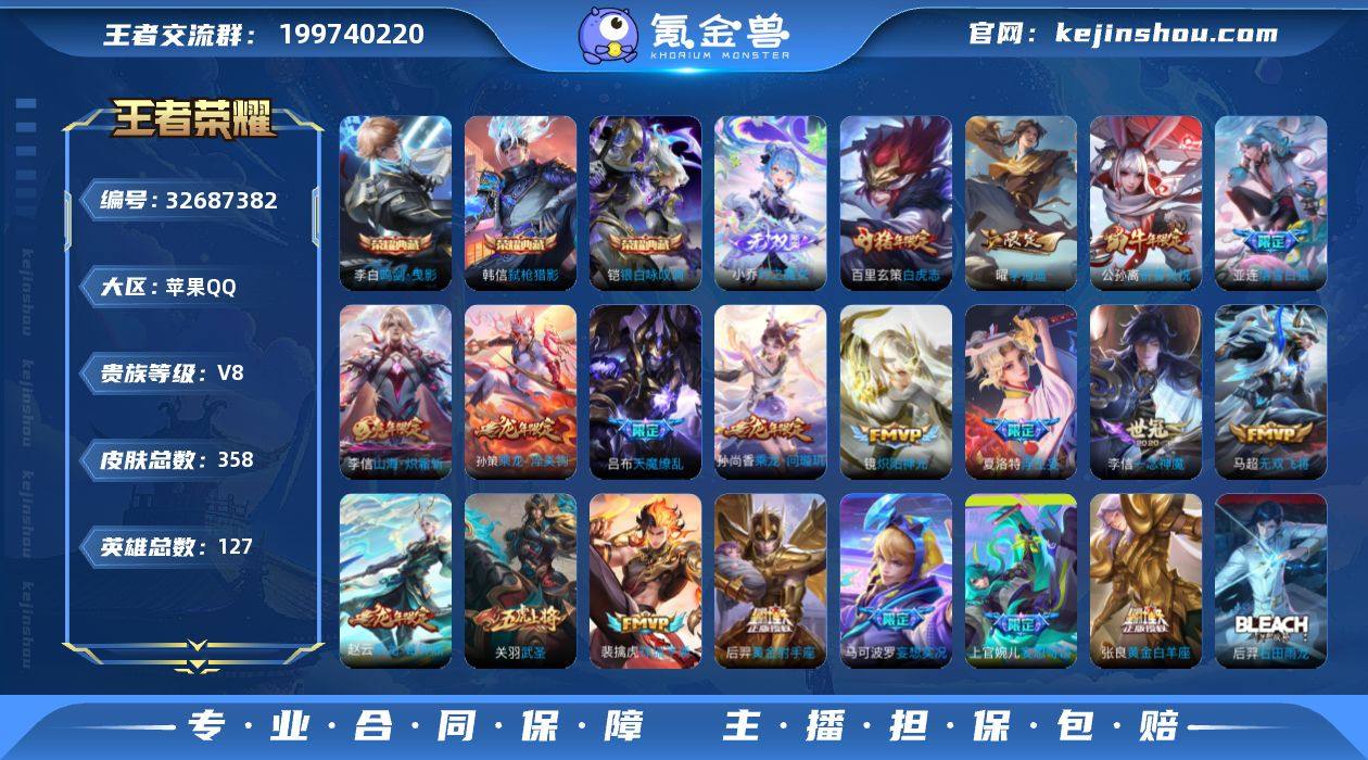 V8 3典藏 1无双 1珍品传说 28传说 127英雄 358皮肤 可修改实名 男号 【英雄全皮】蚩奼全皮,猪八戒全皮 【稀有英雄】敖隐(小龙人),大司命,嬴政(始皇帝),韩信(韩跳跳),夏洛特(夏师傅),艾琳,橘右京(橘子),娜可露露(鸟人),不知火舞,赵云,金蝉(唐僧),戈娅 【荣耀水晶】鸣剑·曳影,弑枪猎影(韩信典藏),银白咏叹调(倪克斯侍卫) 【无双皮】小乔时之魔女(小乔无双) 【珍品传说】怪盗基德 【传说皮】落雪白狼,乘龙·淬吴钩(孙策年限),乘龙·铭钟鼎(赵云年限),乘龙·问璇玑(孙尚香年限),神树通天,祥瑞亨通,李逍遥,山海·炽霜斩(李信年限),大乔-时之奇旅,黄金射手座,黄金白羊座,一念神魔,炽阳神光,无双飞将,时之恋人-刘备(电焊工),浮生妄,妄想实况,妄想奇谈 【珍宝阁皮】妄想食味,蔷薇恋人,女武神,玩趣恶龙 【赛季/战令皮】噬灭天穹(s37),古海寻踪(s33),星界游侠,海盐诗旅(s30),擒涛扼浪(s31),潮玩骑兵,探海日志(s32),驭风魔法,玲珑珍味,流音漫舞,顽趣-梦奇,地狱燃心,剑破天穹(s35),天穹祈灯(s34),天穹之誓(s36),蔡文姬夏日便利店,虞姬夏日便利店,暖冬·兔眠,御銮(s16),朔风刀(s17),混沌棋(s18),疑决卦(s19),醍醐杖(s20),原初探秘者(s21),万华元夜(s22),演武夺筹(s23),驱傩正仪(s24),千军破阵(s...