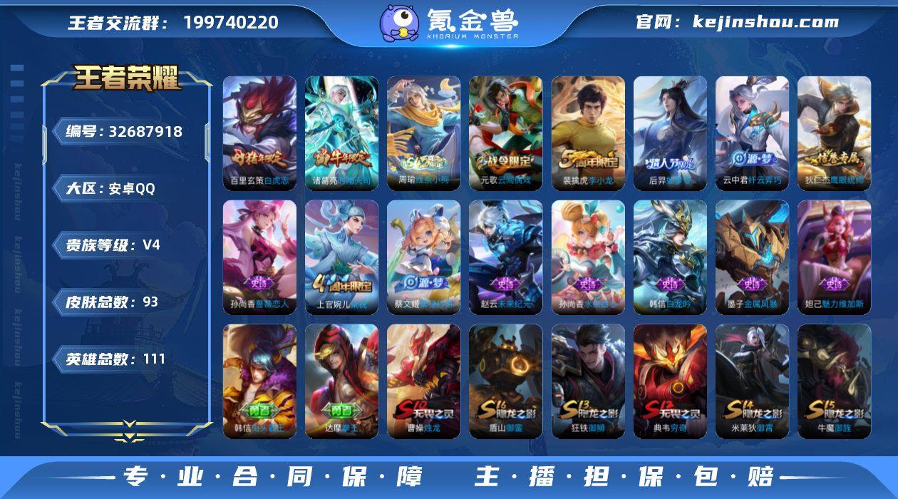 【W6382】亮点:3.7k低场次打野号(热门皮肤)白虎志.时雨天司.安卓Q-可二次-贵4-111英雄-93皮肤-2传说-30限定-贵族积分3587-营地ID:228081679