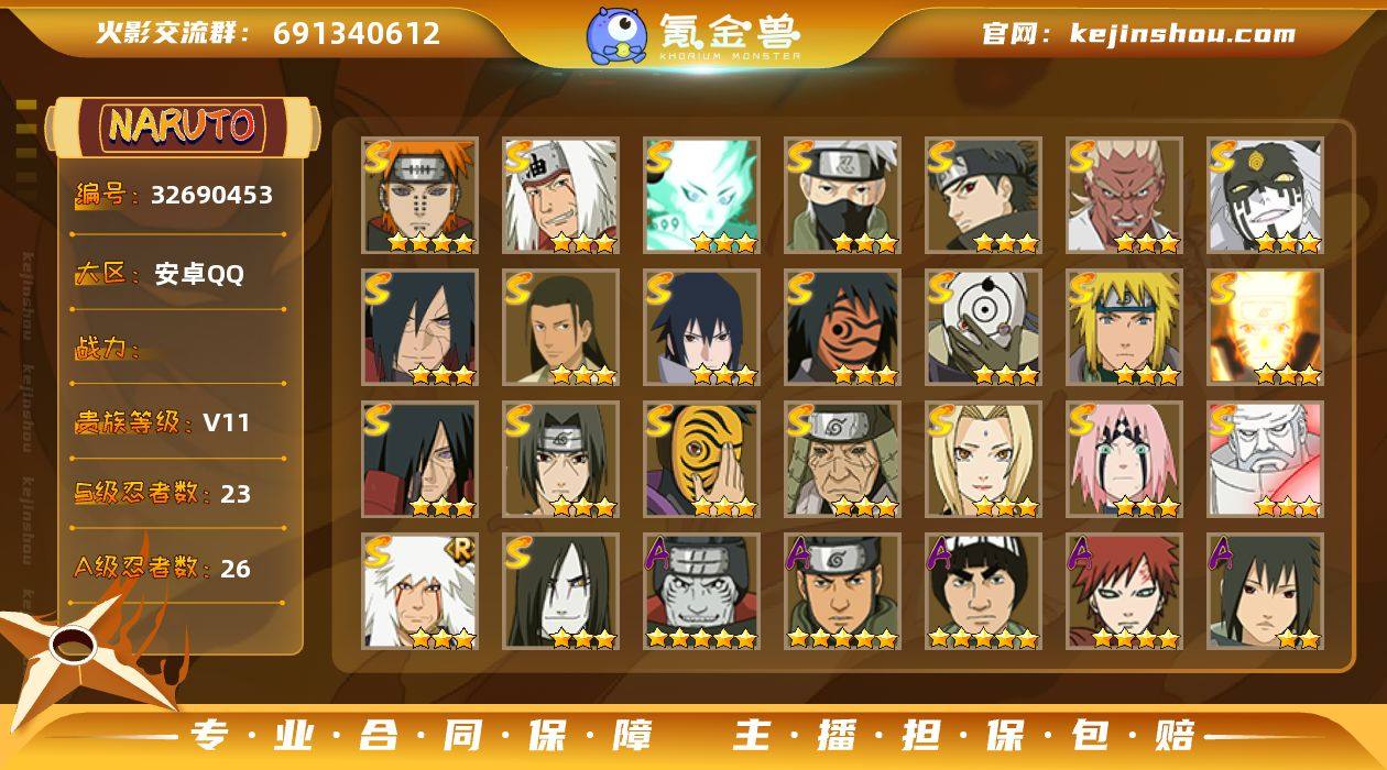 【编号67325 可秒换绑】店长推荐特价处理精品号23S级忍者数-26A级忍者数 【S级忍者】:猿飞日斩「秽土转生」(3星),宇智波斑「秽土转生」(3星),宇智波斑「秽土转生·解」(3星),春野樱「忍界大战」(3星),艾「忍界大战」(3星),宇智波鼬「须佐能乎」(3星),宇智波止水「须佐能乎」(3星),旗木卡卡西「须佐能乎」(3星),千手柱间「木叶创立」(3星),自来也「舞之豪杰」(3星),大蛇丸(3星),自来也「传说中的三忍」(3星),纲手(3星),波风水门(3星),神秘面具男(3星),神秘面具男「红夜之刃」(3星),漩涡鸣人「九喇嘛连结」(3星),佩恩「天道」(4星),宇智波佐助「永恒万花筒」(3星),宇智波斑 「白面具」(3星宇智波斑「白面具」),大筒木金式(3星),大筒木桃式(3星),大筒木舍人「最终章」(3星) 【A级忍者】:艾「青年」(2星),长门「青年」(2星),迪达拉(2星),飞段(2星),飞段「死司凭血」(2星),干柿鬼鲛(5星),漩涡博人「桃式显现」(2星),漩涡鸣人「九尾查克拉」(2星),迈特凯(5星),我爱罗「疾风传」(4星),蝎(2星),蝎「绯流琥」(2星),角都「秽土转生」(2星),猿飞阿斯玛(5星),宇智波鼬(2星),照美冥「五代目水影」(2星),日向宁次「忍界大战」(2星),日向雏田「最终...