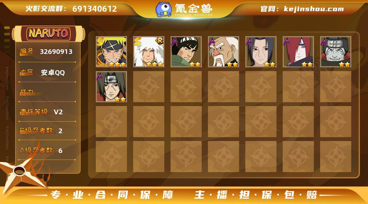 2S级忍者数-6A级忍者数 【S级忍者】:自来也「舞之豪杰」(3星),漩涡鸣人·宇智波佐助(3星) 【A级忍者】:长门「青年」(2星),干柿鬼鲛(2星),宇智波鼬(2星),宇智波鼬「夏日限定」(2星),大野木「侠隐江湖」(2星),迈特凯「青春爆炸」(2星)