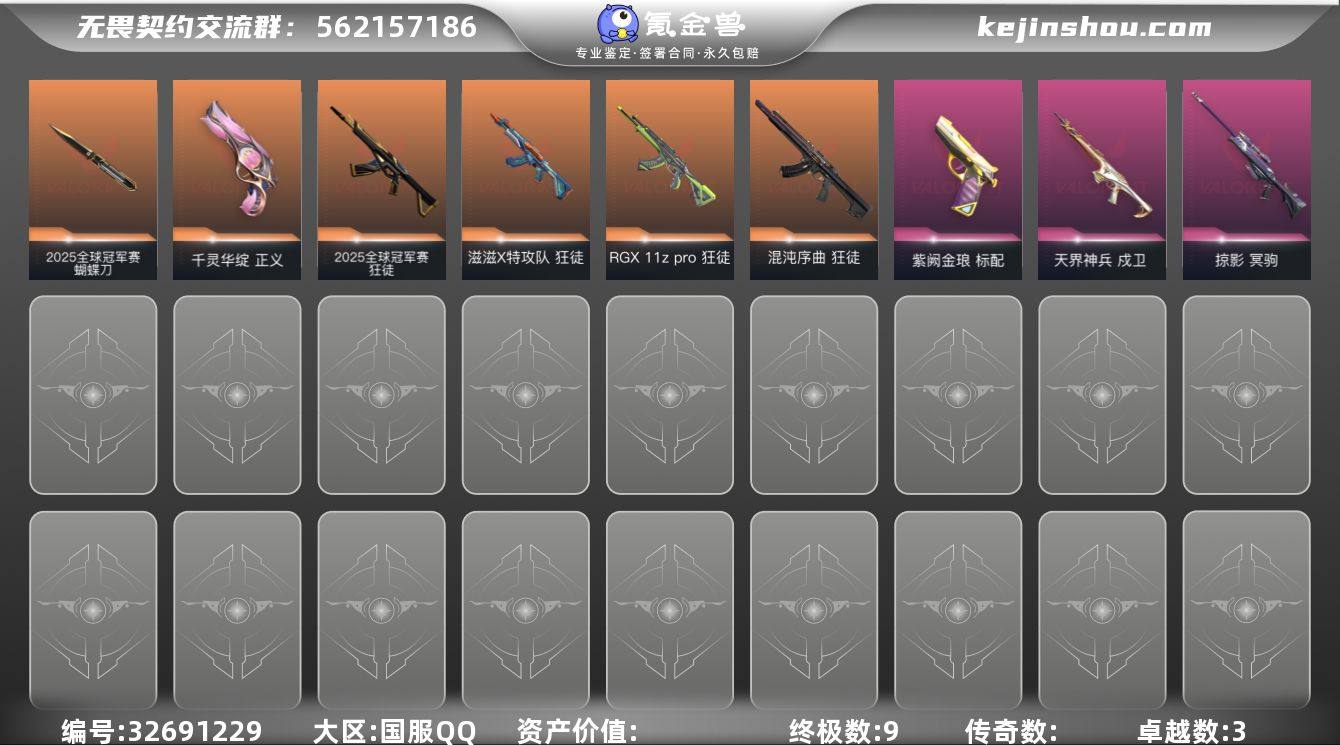 【WWC1764】终极*9/卓越*3/皮肤*28/等级*177/段位:黄金/2025全球冠军赛/幻棱/炼狱/暮蝶/壹决/捷风/不死鸟/贤者/猎枭/蝰蛇/芮娜/奇乐/尚勃勒/盖可/黑梦/2025全球冠军赛 蝴蝶刀/近战武器-碎心裂刃/紫金爪刀/黑波之刃/2025全球冠军赛 狂徒/狂徒-混沌序曲/狂徒-RGX 11z pro/狂徒-滋滋X特攻队/戍卫-天界神兵/冥驹-掠影/标配-紫阙金琅/正义-千灵华绽/鬼魅-诡秘蛇影/从黄昏到黎明 卡面/南瓜盛典 卡面/无畏契约:暮蝶 卡面/正义的化身 卡面/最高舞台 卡面/梦幻奶茶 卡面/无畏契约GO!第一卷:芮娜 卡面/无畏契约GO!第一卷:零 卡面/逆向独行 卡面 /代号红色 卡面/冰淇淋店 卡面/新兵报到 卡面/V契约 卡面/无畏契约 卡面/伤心心 喷漆/超级粉丝 喷漆/捷风差距 喷漆/买装还是存钱 喷漆/关门放狗 喷漆/暴走萝莉 喷漆/胜利属于无畏契约 喷漆/GLHF 喷漆/无畏契约 喷漆/无畏契约GO!第一卷 芮娜 挂饰/无畏契约GO!第一卷 零 挂饰/第九季//第二幕 纪念币 挂饰/薰衣草之心挂饰/袖珍捷风挂饰/第九季//第一幕 纪念币 挂饰/深海水母 挂饰/天外飞客 挂饰/双城之战魄罗挂饰/针织蜜蜂挂饰/无畏契约 纪念币 挂饰