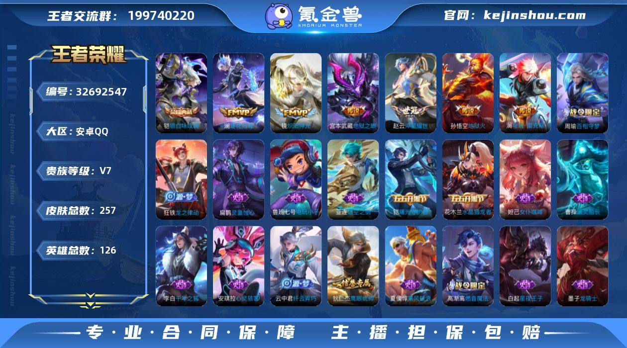 【WZZG144】贵族7/皮肤257/典藏1/传说11/史诗64/英雄126/孙权全皮/澜全皮/空空儿全皮/铠-银白咏叹调/后羿神树通天/澜-愿照·九州拓/桑启-鸣野蒿/夏侯惇-霜北刀/澜-逐花归海/澜-电玩·雷克斯/李白-诗剑行/赵云-淬星耀世/镜-炽阳神光/宫本武藏-地狱之眼/孙悟空-地狱火/姜子牙-天穹之誓/狄仁杰-阴阳师/赵云-皇家上将/孙尚香-蔷薇恋人/鲁班七号-狮舞东方/高渐离-玩趣恶龙/阿轲-迷踪丽影/芈月-重明/周瑜-赤莲之焰/元歌-云间偶戏/夏侯惇-朔风刀/曹操-烛龙/典韦-穷奇/典韦-蓝屏警告/马可波罗-暗影游猎/狄仁杰-魔术师/狄仁杰-万华元夜/达摩-沙漠行僧/项羽-海滩派对/老夫子-醍醐杖/程咬金-演武夺筹/刘邦-夺宝奇兵/兰陵王-驯魔猎人/兰陵王-金庭之子/亚瑟-潮玩骑士王/牛魔-御旌/李元芳-银河之约/李元芳-云中旅人/钟馗-神迹守卫/钟馗-驱傩正仪/女娲-朔望之晖/雅典娜-单词大作战/太乙真人-饕餮/鬼谷子-原初探秘者/铠-青龙志/苏烈-千军破阵/百里玄策-原初追逐者/弈星-混沌棋/沈梦溪-星空之诺/明世隐-疑决卦/裴擒虎-李小龙/狂铁-御狮/米莱狄-御霄/云中君-纤云弄巧/盾山-御銮/猪八戒-西部大镖客/上官婉儿-梁祝/蒙犽-狂想玩偶喵/鲁班大师-探海日志/桑启-海盐诗旅/张良-古海寻踪/高渐离-燃音魔法/...