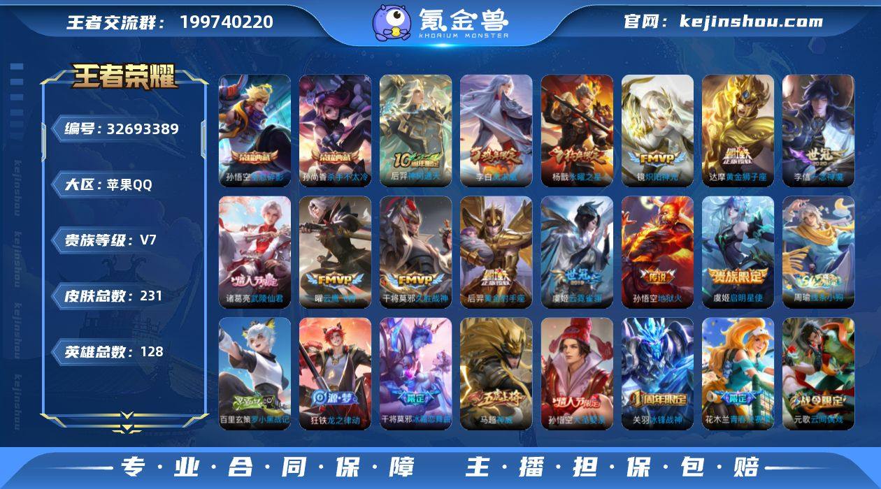 V8等级自用号2个荣耀皮肤,传说13个史诗56个全套皮肤15个限定65个