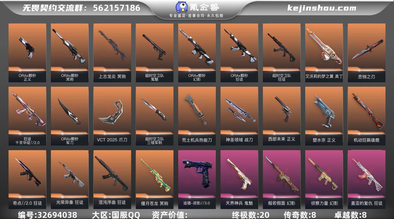 【qyz9516】包人脸玩够能回血 全热门皮肤带25vct爪刀 悲悯之刃 三棱军刺 qyz9516 【近战武器】:近战武器-碎心裂刃,近战武器-影蝶,近战武器-无畏契约季前邀请赛 ,近战武器-ORA x 颗秒 军刀,近战武器-超时空卫队 三棱军刺,近战武器-穿花蝴蝶,近战武器-VCT 2025 爪刀,近战武器-鬼丸国纲,近战武器-荒土机兵 热能刀,近战武器-神圣领域 战刀 【狂徒】:狂徒-混沌序曲,狂徒-奇点//2.0,狂徒-光荣异象,狂徒-ORA x 颗秒,狂徒-千灵华绽//2.0,狂徒-超时空卫队,狂徒-掠影,狂徒-盖亚的复仇,狂徒-日冕雄师,狂徒-紫阙金琅,狂徒-荒土机兵,狂徒-诡秘蛇影 【幻影】:幻影-ORA x 颗秒,幻影-般若假面,幻影-侦察力量,幻影-神圣领域,幻影-纳米打击,幻影-末日之翼 【戍卫】:戍卫-逆冲蛮牛,戍卫-月球哨兵,戍卫-折光棱晶 【獠犬】:獠犬-神圣领域,獠犬-逆冲蛮牛 【冥驹】:冥驹-偃月苍龙,冥驹-ORA x 颗秒,冥驹-上古龙炎,冥驹-荒土机兵,冥驹-星云暗涌 【飞将】:飞将-末日之翼 【莽侠】:莽侠-诡秘蛇影,莽侠-月球哨兵 【战神】:战神-神圣领域 【奥丁】:奥丁-艾沃莉的梦之翼,奥丁-纳米打击,奥丁-末日之翼 【判官】:判官-诡秘蛇影,判官-纳米打击x 【雄鹿】:雄鹿-...