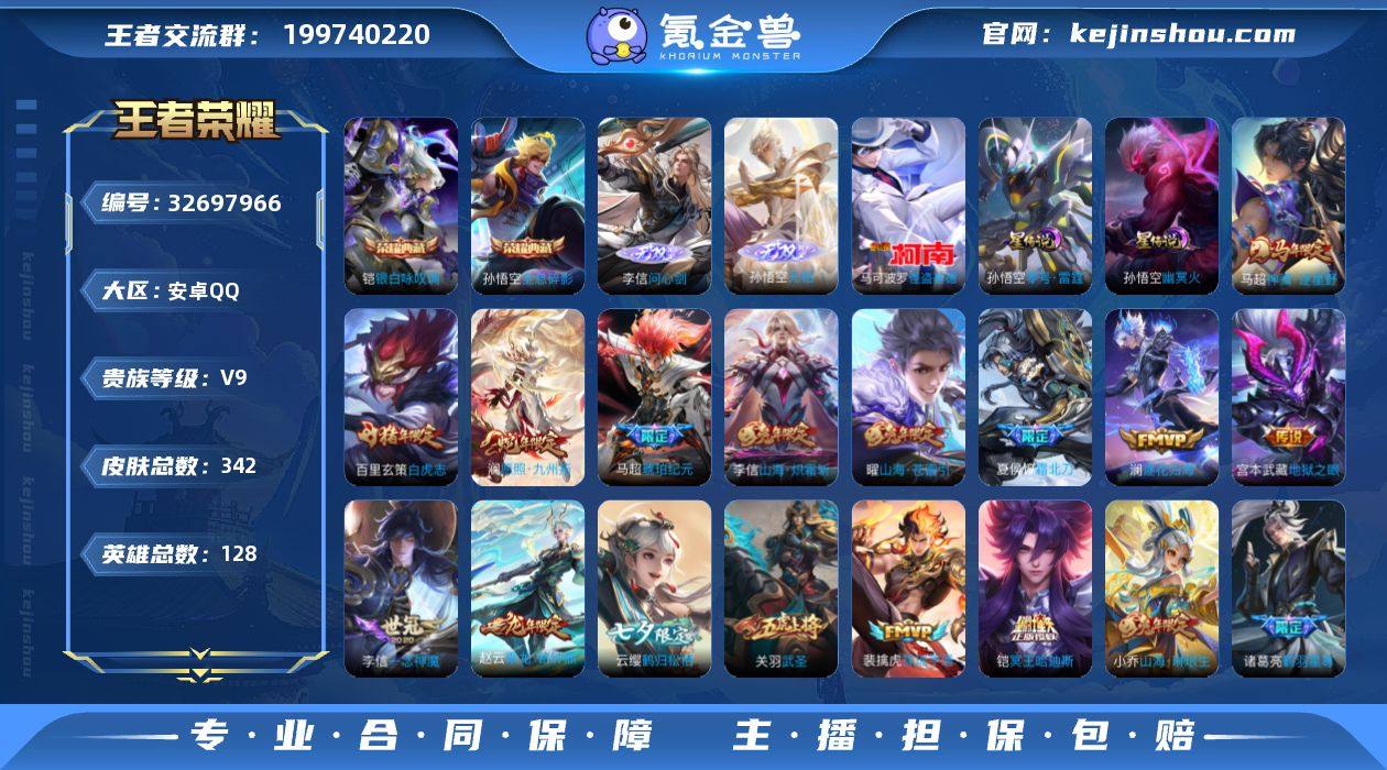 可换绑 【精品连体号·和平6粉装11特·王者超多限定·无双李信猴子·典藏猴子铠·珍品怪盗基德·霜北刀·冥王哈迪斯·赵云年限·马超铠·琥珀纪元·李信年限·齐天大圣·武圣·白虎志·至尊宝·3星传说】 19按键 3星传说,9王者印记,30五级铭文 可二次CD18941 安卓Q-V9-342皮肤-2典藏皮肤-2无双-1珍品传说-30传说-101史诗【英雄全皮】:孙权全皮,孙悟空全皮,李信全皮,敖隐全皮,空空儿全皮【荣耀典藏】:孙悟空全息碎影,铠银白咏叹调【无双皮肤】:李信问心剑,孙悟空无相【珍品传说】:马可波罗怪盗基德【星元皮肤】:刘备时之思念,孙悟空零号雷霆,孙悟空幽冥火【传说皮肤】:马超神骥逐星野,澜愿照九州拓,裴擒虎祥瑞亨通,桑启鸣野蒿,夏侯惇霜北刀,铠冥王哈迪斯,赵云乘龙铭钟鼎,马超琥珀纪元,铠琥珀纪元,澜逐花归海,云缨鹤归松栖,诸葛亮鹤羽星尊,孙悟空齐天大圣,小乔山海琳琅生,曜山海苍雷引,李信山海炽霜斩,孙策挚爱之约,周瑜音你心动,虞姬启明星使,孙悟空零号赤焰,关羽武圣,李信一念神魔,刘备时之恋人,干将莫邪久胜战神,虞姬云霓雀翎,百里玄策白虎志,梦奇胖达荣荣,后羿黄金射手座,宫本武藏地狱之眼,孙悟空地狱火【限定皮肤】:夏侯惇霜北刀,铠冥王哈...