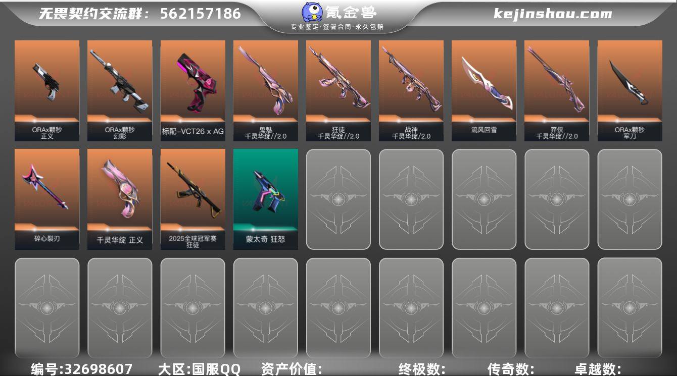 【热门模组刀皮+25冠军狂徒 】精品手慢无系列!【可二次 可秒换绑】L193487 (千灵华绽//2.0套装)无畏契约/76级/未定级/23英雄/25皮肤/资产21770/已使用R点430/剩余R点35/碎心裂刃,ORA-x-颗秒-军刀,流风回雪,千灵华绽//2.0-狂徒,千灵华绽//2.0-战神,千灵华绽//2.0-莽侠,千灵华绽//2.0-鬼魅,2025全球冠军赛-狂徒,ORA-x-颗秒-幻影,VCT26-x-AG-标配,千灵华绽-正义,ORA-x-颗秒-正义
