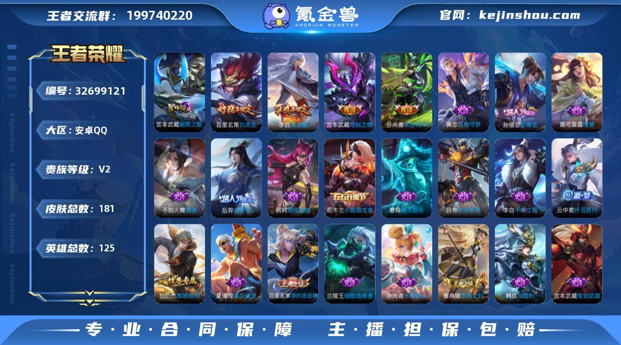 【极品带妹打野小号·寅虎赤拳·白虎志·凤求凰·幽冥之眼·飞衡·至尊宝·无二次包过】w21411-安卓Q-125英雄-181皮肤-17王者印记-铭文-贵族积分2w【贵族2】【1星传说·5传说】【因赛季更新游戏段付以上号为准!】 【星元皮肤】:宫本武藏幽冥之眼 【传说皮肤】:裴擒虎寅虎赤拳,百里玄策白虎志,李白凤求凰,孙尚香末日机甲,宫本武藏地狱之眼 【限定皮肤】:白起狰,姜子牙天穹之誓,狄仁杰阴阳师,赵云皇家上将,孙尚香蔷薇恋人,芈月重明,元歌云间偶戏,元歌无心,夏侯惇朔风刀,曹操烛龙,典韦穷奇,马可波罗暗影游猎,马可波罗山海玄木吟,狄仁杰魔术师,狄仁杰万华元夜,达摩沙漠行僧,项羽海滩派对,老夫子醍醐杖,程咬金演武夺筹,韩信飞衡,兰陵王金庭之子,花木兰默契交锋,亚瑟潮玩骑士王,孙悟空至尊宝,牛魔御旌,后羿如梦令,李元芳云中旅人,钟馗驱傩正仪,雅典娜黎明之约,太乙真人饕餮,鬼谷子原初探秘者,鬼谷子五谷丰年,苏烈千军破阵,百里玄策白虎志,百里玄策原初追逐者,弈星混沌棋,梦奇顽趣,沈梦溪大漠名商,明世隐疑决卦,裴擒虎李小龙,裴擒虎寅虎赤拳,裴擒虎擒涛扼浪,狂铁御狮,米莱狄御霄,云中君纤云弄巧,伽罗天狼溯光者,盾山御銮,猪八戒西部大...