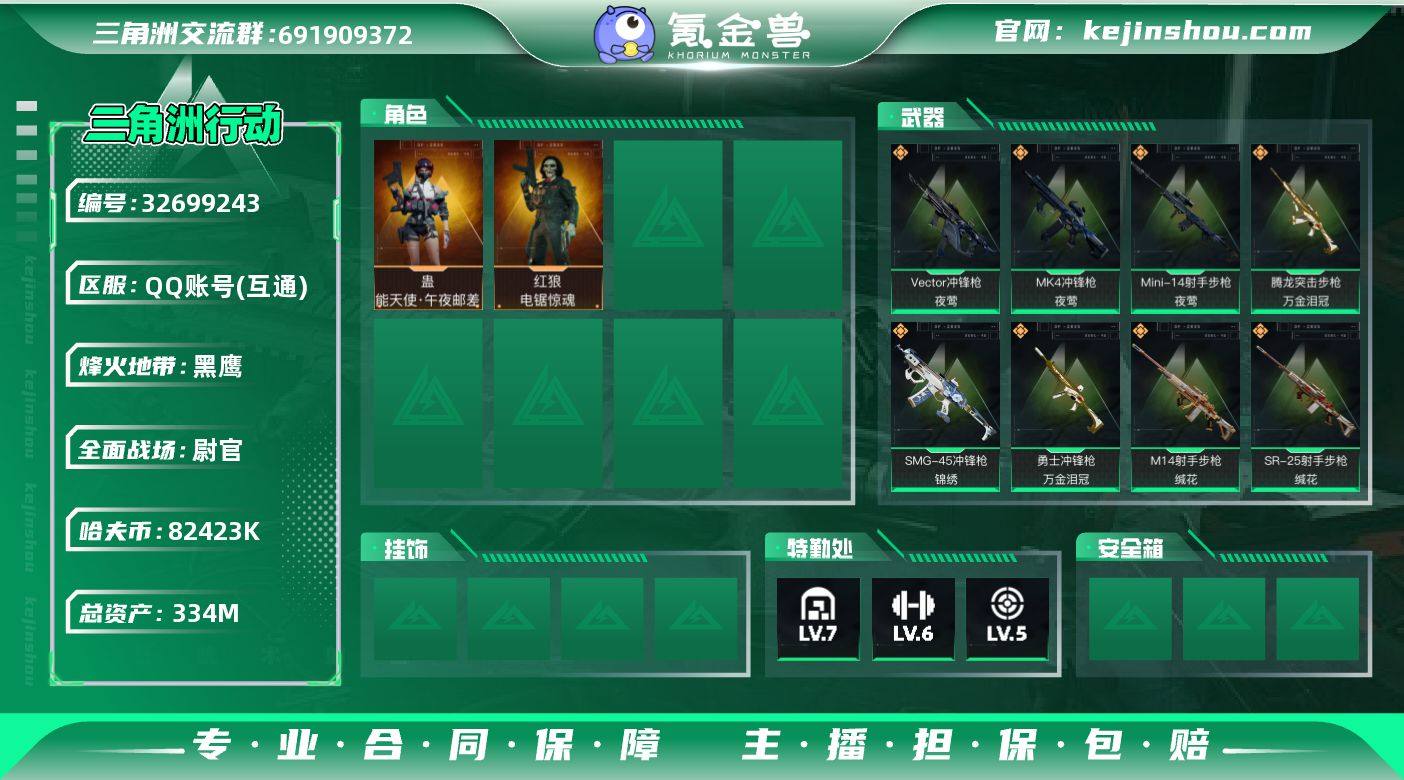 【941100】包人脸 玩够能回血疯狂猛攻号 一红皮 sjs10035 334m总资产-82423k哈夫币-60烽火等级-黑鹰-41战场等级-尉官 【干员外观】:蛊-能天使午夜邮差,红狼-电锯惊魂 【近战皮肤】:近战-处刑者2级,近战-黑鹰 【传说外观】:M4A1突击步枪-阿米娅,ASh-12战斗步枪-鹅鸭杀,AUG突击步枪-悠然茶歇,AK-12突击步枪-特斯拉线圈,SCAR-H战斗步枪-启航,CAR-15突击步枪-阿米娅,腾龙突击步枪-万金泪冠,KC17突击步枪-电锯惊魂,MK47突击步枪-悠然茶歇,Vector冲锋枪-能天使-午夜邮差,Vector冲锋枪-夜莺,UZI冲锋枪-特斯拉线圈,UZI冲锋枪-悠然茶歇,SMG-45冲锋枪-锦绣,SR-3M紧凑突击步枪-特斯拉线圈,勇士冲锋枪-能天使-午夜邮差,勇士冲锋枪-万金泪冠,QCQ171冲锋枪-鹅鸭杀,QCQ171冲锋枪-不羁人生,MK4冲锋枪-夜莺,QJB201轻机枪-鹅鸭杀,Mini-14射手步枪-夜莺,M14射手步枪-缄花,SKS射手步枪-骑士,SR-25射手步枪-缄花,R93狙击步枪-维什戴尔,AWM狙击步枪-万金泪冠,.357左轮-缄花 【史诗外观】:K416突击步枪-冬日风情,K416突击步枪-阿萨拉特攻,M16A4突击步枪-竞赛选手,AUG突击步枪-蝮蛇,SG552突击步枪-哈夫克警备,SCAR-H战斗步枪-囚徒,G3战斗步枪-哈夫克警备...