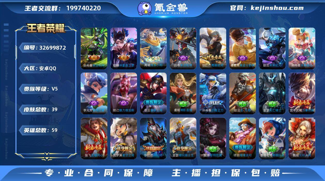 【末日机甲 2传说可秒换绑】安卓QQ-59英雄-39皮肤【传说皮肤】仲夏夜之梦 末日机甲【史诗皮肤】魅力维加斯 鹰眼统帅 逐浪之夏 末日机甲 水果甜心 皇家上将 黄金分割率 未来纪元【勇者皮肤】溯影追猎 线条小狗 海盐诗旅 万象初新 原初探秘者 哥特玫瑰 黑桃队长 疑决卦 星空之诺 沉稳之力 海滩派对 死亡骑士 潮玩骑士王 混沌棋 五福同心 忍·炎影 花好人间 驱傩正仪 西部大镖客 演武夺筹 阴阳师 万华元夜 营地ID:453919403