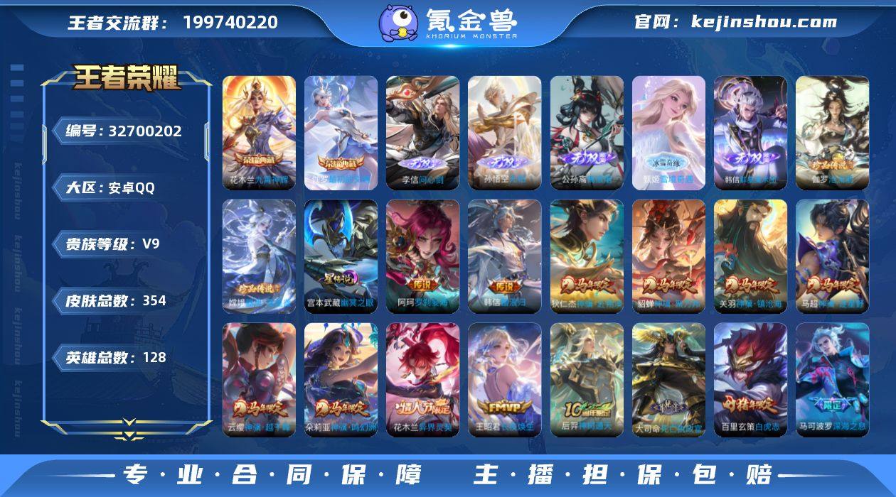 金标苍,发育路20段,星元寅虎,焰心,幽冥之眼,安卓Q-V9-最强王者段位-128英雄-354皮肤-2典藏皮肤-5无双-2珍品传说-36传说-88史诗 【英雄全皮】:孙权全皮,敖隐全皮,影全皮 【荣耀典藏】:花木兰九霄神辉,伽罗最初的交响 【无双皮肤】:李信问心剑,孙悟空无相,甄姬雪境奇遇,公孙离离恨烟,韩信群星魔术团 【珍品传说】:伽罗沧流箭,嫦娥器灵落星盏 【传说皮肤】:阿轲罗刹妄海,韩信踏浪归,云缨神骥越千峰,关羽神骥镇沧海,朵莉亚神骥鸣幻洲,狄仁杰神骥赴朔漠,貂蝉神骥聚万邦,马超神骥逐星野,花木兰异界灵契,王昭君长夜焕生,后羿神树通天,大司命死亡执政官,后羿千劫归真,裴擒虎祥瑞亨通,澜逐花归海,东皇太一灼幽烈阳,孙悟空齐天大圣,王昭君星穹之声,马可波罗深海之息,赵云淬星耀世,王昭君乞巧织情,西施游龙清影,小乔音你心动,诸葛亮时雨天司,镜炽阳神光,虞姬启明星使,孙悟空零号赤焰,曜云鹰飞将,李信一念神魔,张良黄金白羊座,达摩黄金狮子座,百里玄策白虎志,貂蝉仲夏夜之梦,孙尚香末日机甲,宫本武藏地狱之眼,孙悟空地狱火 【限定皮肤】:白起狰,公孙离离恨烟,暃埋骨钱,虞姬夏日便利店,杨戬破阵退雄兵,狄仁杰阴阳师,虞姬凯尔...
