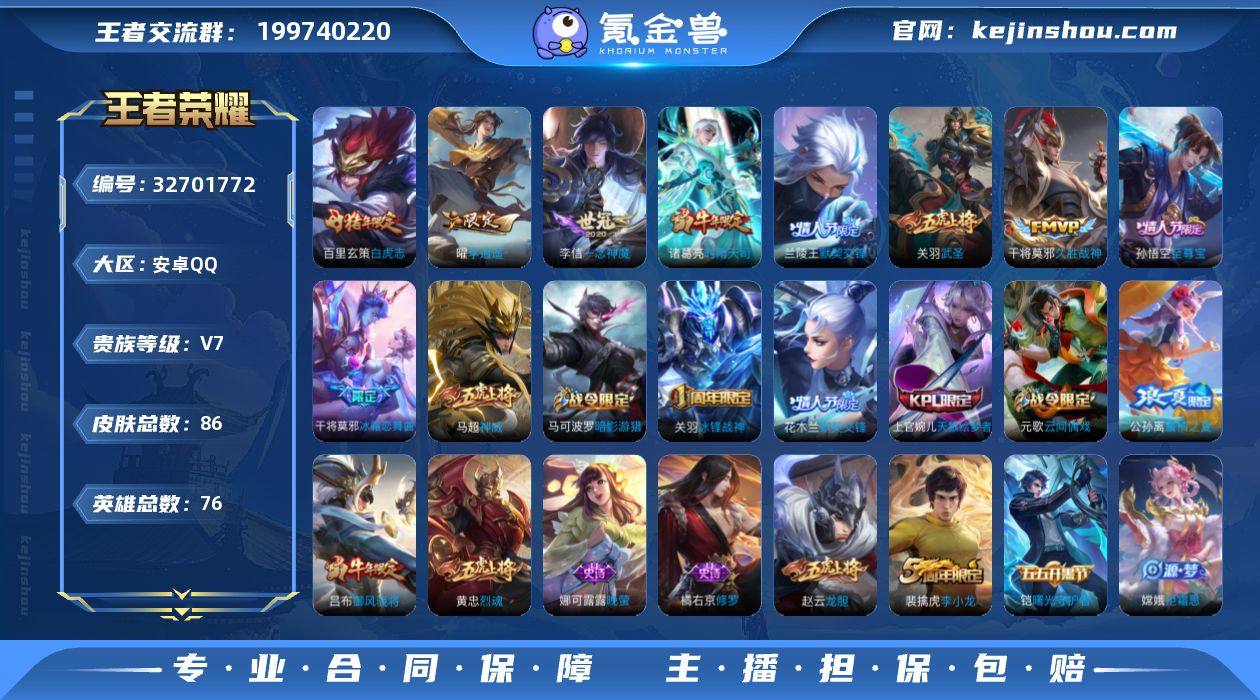 【精品野王号·准v8·7传说·限定皮多·李逍遥·白虎志·至尊宝·武圣·神威·蜜橘之夏·满级铭文·手慢无】 安卓Q-V7-秩序白银III段位-76英雄-86皮肤-7传说-34史诗 【传说皮肤】:曜李逍遥 ,兰陵王默契交锋,诸葛亮时雨天司,关羽武圣,李信一念神魔,干将莫邪久胜战神,百里玄策白虎志 【限定皮肤】:狄仁杰阴阳师,赵云皇家上将,赵云龙胆,墨子神迹守卫,嬴政优雅恋人,吕布御风骁将,元歌云间偶戏,马可波罗暗影游猎,狄仁杰魔术师,狄仁杰万华元夜,项羽海滩派对,项羽霸王别姬,老夫子醍醐杖,老夫子航海奇遇记,关羽冰锋战神,关羽武圣,程咬金演武夺筹,韩信逐梦之影,兰陵王默契交锋,花木兰默契交锋,亚瑟潮玩骑士王,孙悟空至尊宝,钟馗驱傩正仪,干将莫邪冰霜恋舞曲,蔡文姬繁星吟游,鬼谷子原初探秘者,诸葛亮时雨天司,黄忠烈魂,百里玄策白虎志,弈星混沌棋,公孙离蜜橘之夏,明世隐疑决卦,裴擒虎李小龙,云中君纤云弄巧,猪八戒西部大镖客,上官婉儿天狼绘梦者,嫦娥拒霜思,曜李逍遥 【年限皮肤】:百里玄策白虎志,诸葛亮时雨天司,吕布御风骁将 【赛季限定】:弈星混沌棋,明世隐疑决卦,老夫子醍醐杖,鬼谷子原初探秘者,狄仁杰万华元夜,程咬金演武夺筹,钟馗驱...