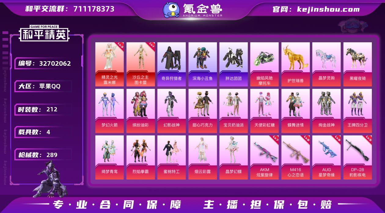 【941211】【战神公主号!战神框 3级精灵 图卡盟 新101 巧克力 猪妹 6级AUG星梦 4把计数枪 番茄 胖达 哥特 粉熊包 满地铁天赋】YXc28470-【可二次】【因赛季更新游戏段付以上号为准!】 苹果Q-2红装5稀有5载具14粉装13特效枪35热门212套装289枪皮 17印记 历史无敌战神 【2红装】 精灵之光-露米娜 (3级) 沙丘之主-图卡盟 (1级) 【5稀有】 奇异狩猎者 AKM-缤纷海域 AKM-百万伏特 SCAR-L-粉色回忆 浪漫天命 【5载具】 晶梦灵驹 护世瑞兽 黑曜夜骑 幽焰风驰摩托车 空客蔚蓝之翼僚机 【14粉装】 梦幻火箭 蝶舞迷情 宝贝奶油派 天使彩虹糖 甜心巧克力 烟云彩露 幻影战神 晶梦幻蝶 缤纷油彩 绚金战神 王牌四分卫 绮梦青鸾 烈焰拳霸 蜜桃特工 【13特效枪】 M416-心之恋语 (6级) M416-墨龙九天 (3级) P90-沙丘之主 (1级) AKM-炫紫旋律 (7级) AKM-幽焰骑士 (2级) Kar98K-巳巳如意 (5级) DP-28-千金淑猫 (3级) DP-28-豹影疾电 (5级) AUG-星梦奇缘 (6级) UMP45-量子极限 (5级) AUG-星之彼岸 (1级) Mk14-福马献瑞 (5级) 烟雾弹-猫咪绅士 (5级) 【35热门】 Mark.06 小丑鱼 龟仙人 萌神柯基 浪漫假日 红熊茄茄 青涩年华 恶魔人蛛 晶辉守护 鹰眼刺客 兔兔白日梦 深海小丑鱼 胖达团团 ST...