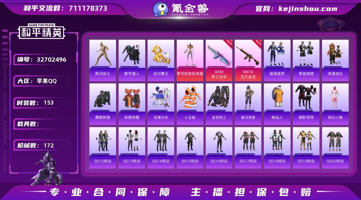无二次-苹果 手Q-1粉装-3特效枪-0载具-2粉色飞行器-54083热力值-15王牌印记-153套装-172枪皮HZ2632406 【热门品类】:套装-浪漫天命,套装-都市猎人,套装-冥河战士,套装-派对舞王,套装-小丑鱼,套装-金羽特工,套装-星河浪客,套装-龟仙人,套装-暗影哥特,套装-浪漫波比,套装-粉红小猪 【粉色套装】:角色-零号机款机体服 【粉色枪皮等级】:AKM-梦之光华(七级),M416-五爪金龙(七级),Mk14-福马献瑞(五级) 【粉色枪皮】:AKM-梦之光华,M416-五爪金龙,Mk14-福马献瑞 【粉色飞行器】:炫彩糖果飞行器,马卡龙飞行器 【粉色降落伞】:未来战士降落伞,至尊龙雀降落伞,马卡龙降落伞,星之彼岸降落伞,洛神天依降落伞,垂柳戏鸭降落伞,精灵梦叶罗丽降落伞,炫彩糖果降落伞 【稀有套装】:套装-龟仙人,套装-雪国风尚,套装-炫彩糖果,套装-马上有钱,套装-画境星梦,套装-琴音绮想,套装-雨过天青,套装-红釉青花 【稀有枪皮】:AUG-冰晶雪宝,AKM-彩虹符号,AKM-影袭,AKM-灼热熔岩,AKM-破晓战魂,AKM-虎虎生威,AKM-霓虹街区,AKM-龙的传人,M16A4-冥河战士,M16A4-夜灯,M16A4-幻世战舞者,M16A4-甜心亚梦,M16A4-蓝色火焰,SCAR-L-暗夜玫瑰,SCAR-L-炫彩节奏,SCAR-...